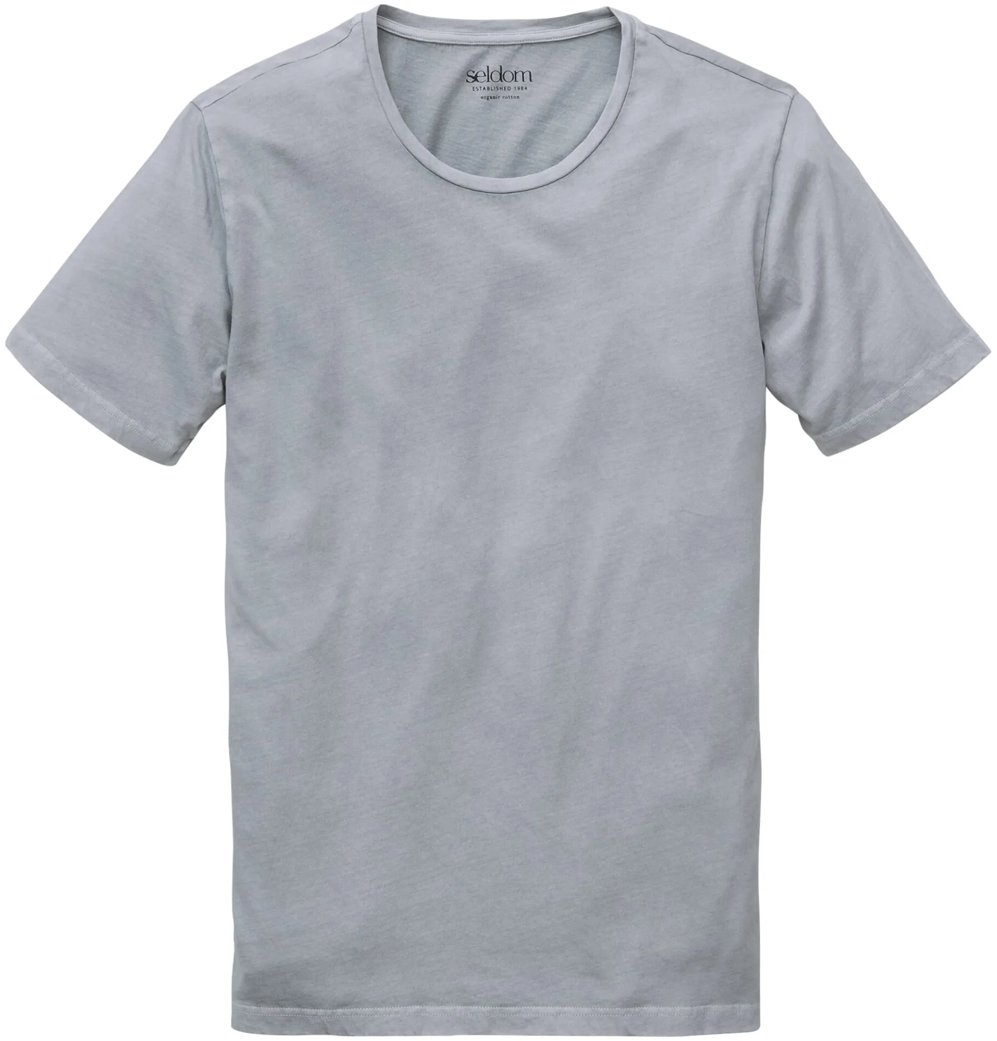 Klassisches Rundhals-T-Shirt aus kbA-Baumwoll-Jersey, dessen Maschenware einen ausgewaschenen Effekt zeigt.