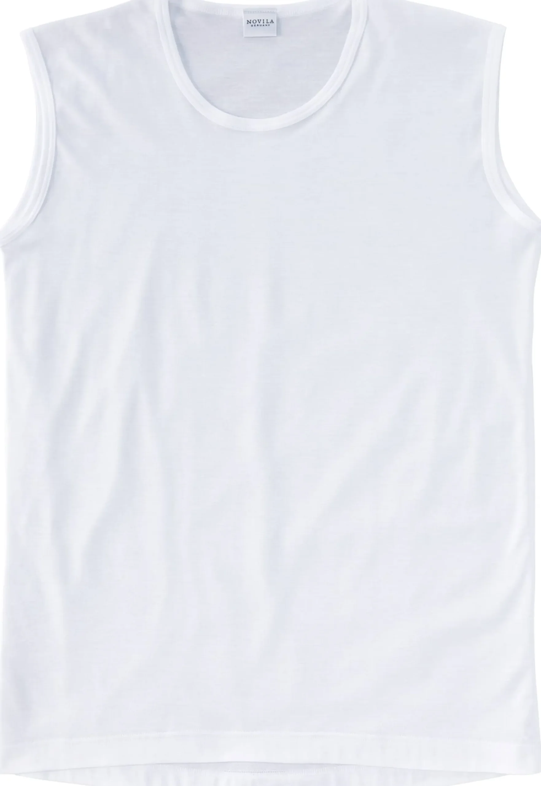 Dieses Unterhemd fertigt Novila aus langstapeliger Mako-Baumwolle. Genauer aus einem Feininterlock, einem Gewirk mit gleichmäßiger, glatter und weicher Oberfläche. Feininterlock hat zudem eine gute Dehnbarkeit, wodurch er sich gut an den Körper anpasst und auch nach mehreren Wäschen seine Form und Struktur behält. Das Unterhemd ist eher körpernah und mit verlängertem Rumpf geschnitten, zudem ist es mit flachen Nähten gearbeitet und das elastische Rundhalsbündchen liegt gut an. Die Schulterpartie ist etwas breiter gehalten als bei einem klassischen Achselshirt. Mit dieser Form ist das Undershirt das ideale Unterziehhemd unter einem Business- oder Freizeithemd.