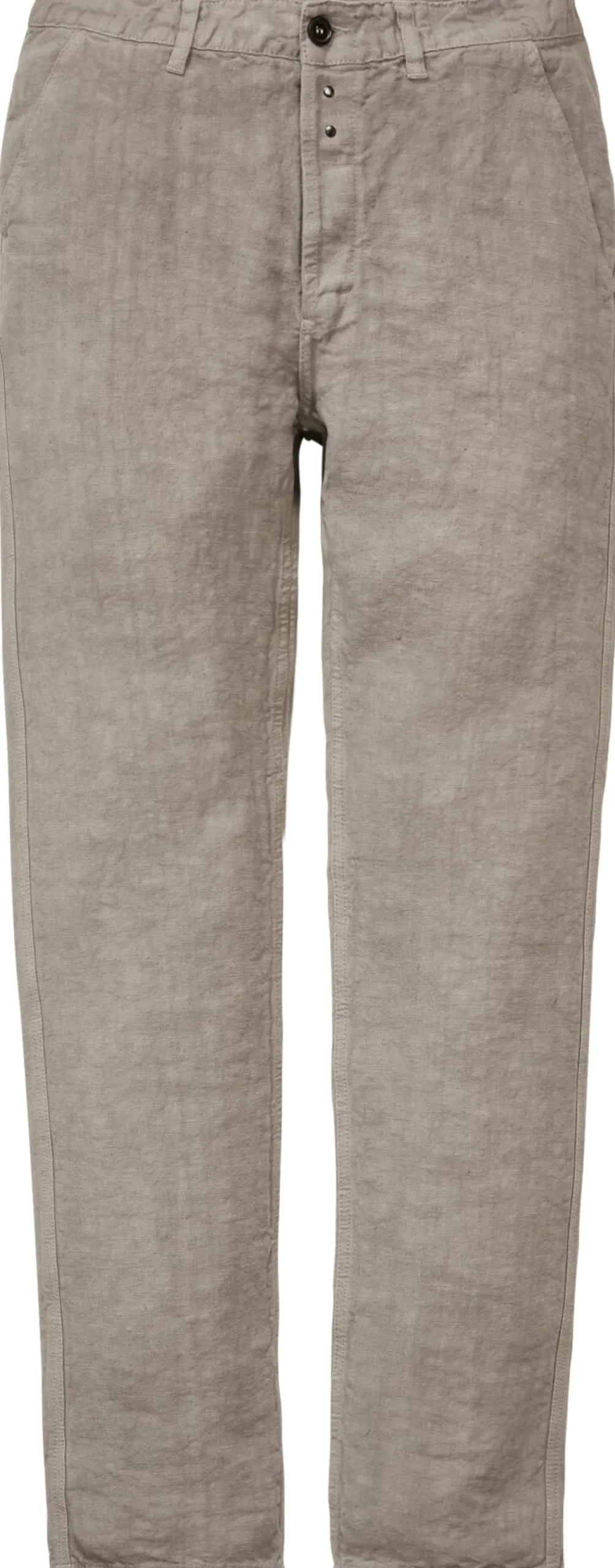 Ungefütterte Leinenhose, die mittels Knopfleiste, Knopf und Sicherheitshaken geschlossen wird. Die Hose ist mit zwei Seitentaschen und zwei Gesäßtaschen ausgestattet.