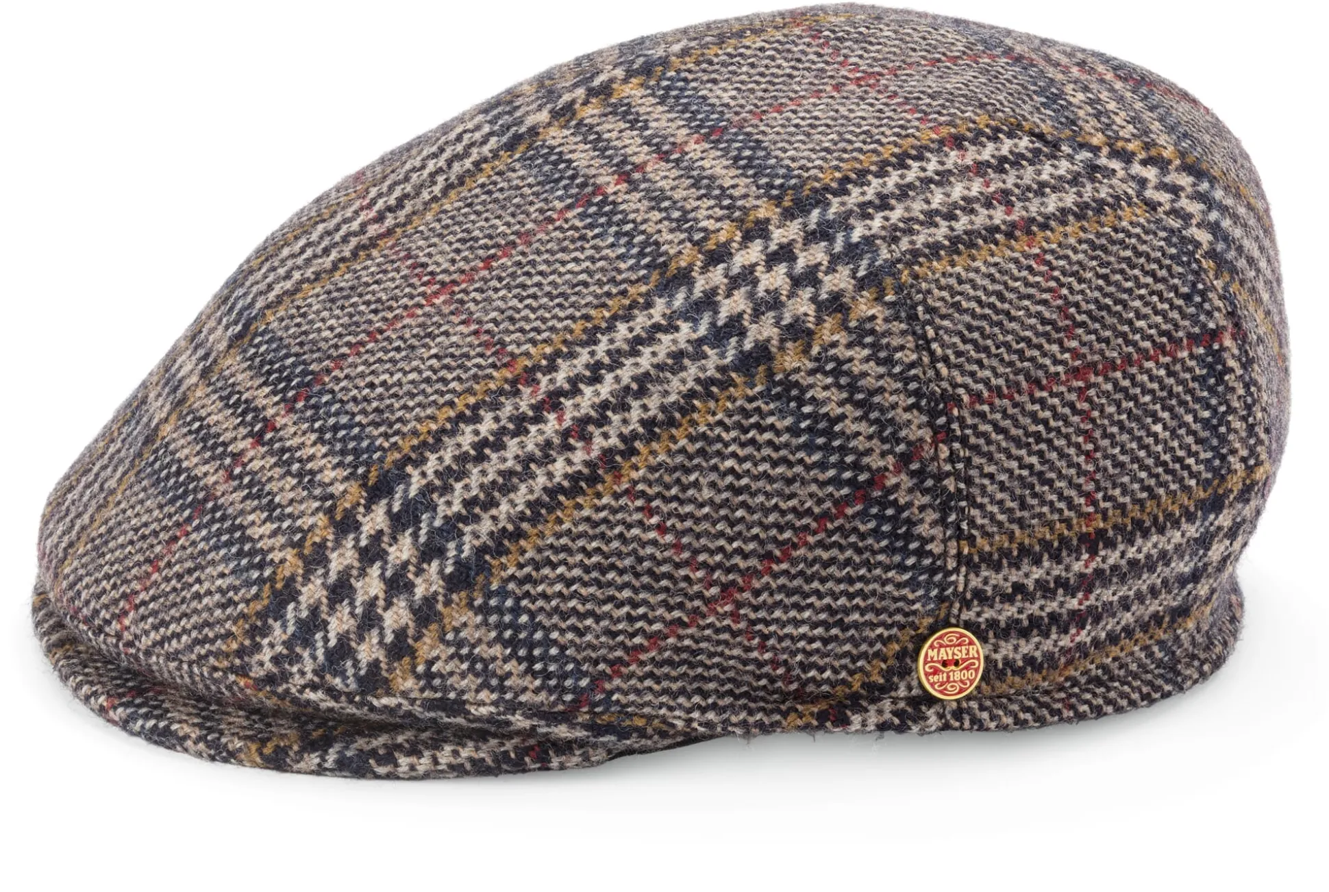 In Form der klassischen Schiebermütze fertigt Mayser diese Kappe, deren Stoff alles andere als alltäglich ist. Das beginnt bei der Wolle, die von Schafen auf der Schwäbischen Alb stammt. In der Zwickauer Kammgarnspinnerei werden daraus Multicolorgarne mit schönem Melangeeffekt gesponnen. Diese werden anschließend in der oberfränkischen Weberei Zuleeg zu Stoffen verarbeitet, die schließlich bei Knopf’s Sohn – ebenfalls in Oberfranken ansässig und branchenführend in Europa – veredelt werden. Doch nicht nur der Stoff kann sich sehen lassen, sondern auch die Verarbeitung. So achtet Mayser traditionell auf eine gute Passform. Diese wird nicht zuletzt durch formgebenden Abnäher am Hinterkopf erreicht.