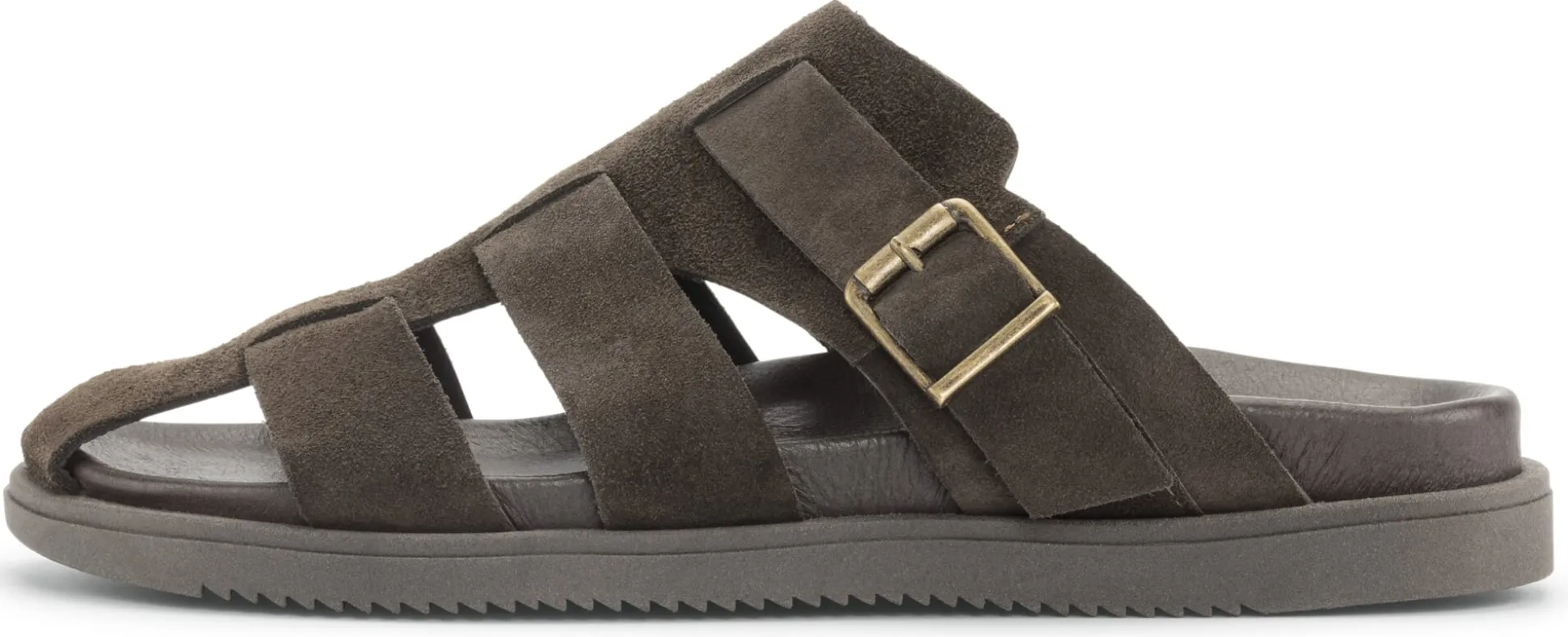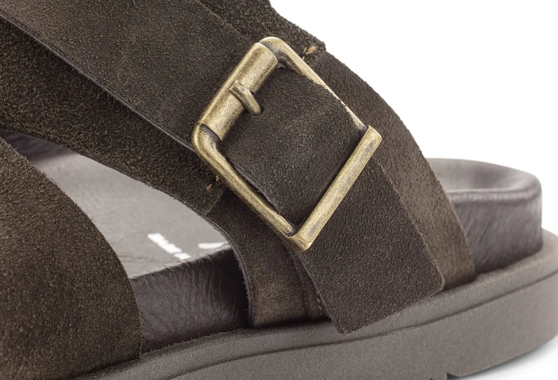 - Mit breiten Lederriemen: sitzt gut am Fuß