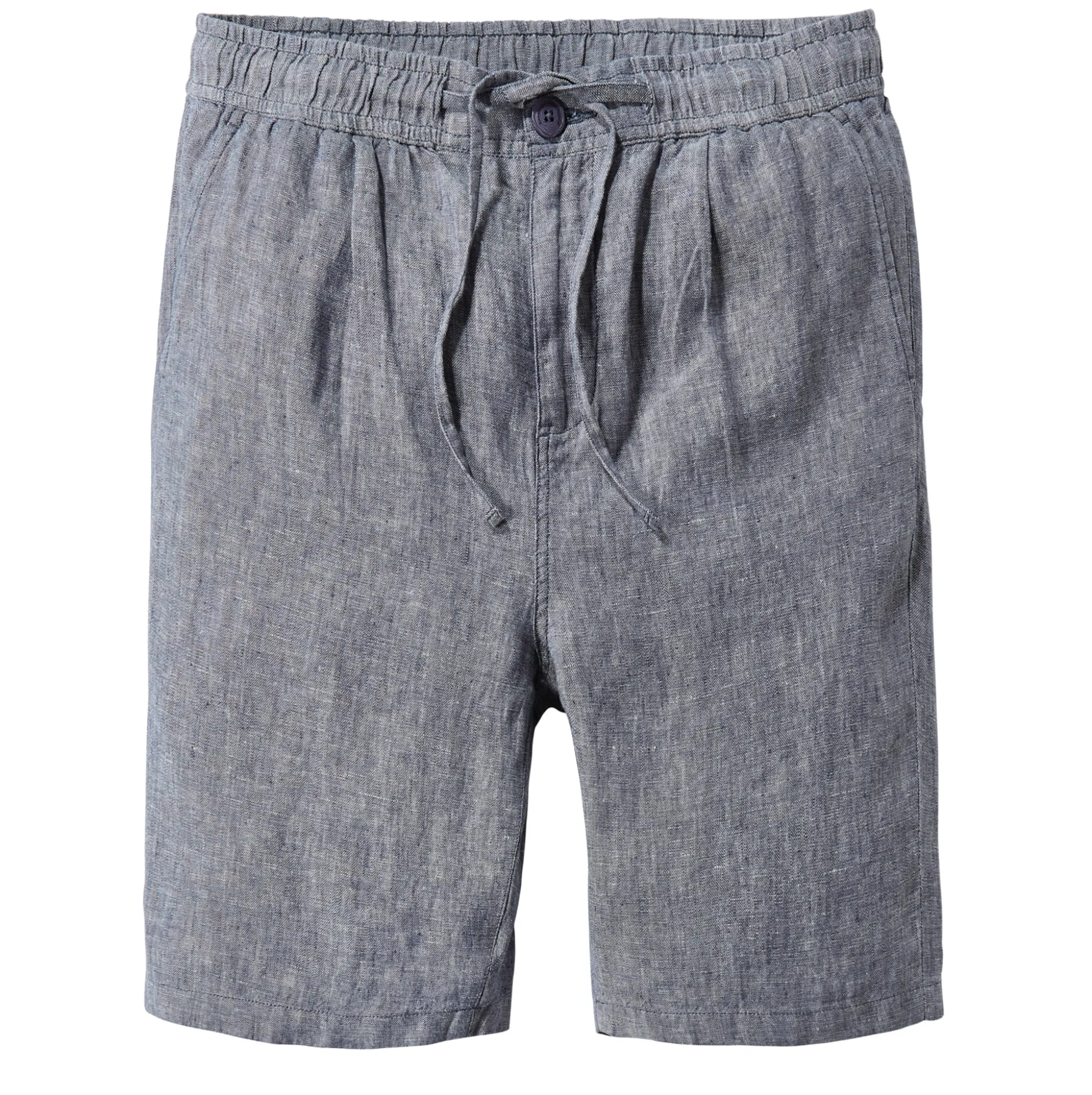 Lässige Shorts, deren Stoff aus strapazierbarem, kühlendem Leinen besteht. Das Gewebe zeigt die materialtypischem Fadenverdickungen und einen ausgeprägten Melangeeffekt. Die Shorts wird wird mittels Reißverschluss und Knopf geschlossen, ein Gummibund mit Bindeband erhöht den Tragekomfort. Je zwei Seitentaschen und eingesetzte Gesäßtaschen nehmen Kleinteile des täglichen Bedarfs auf. Die Flachsfasern für den Stoff stammen aus kontrolliert biologischem Anbau.