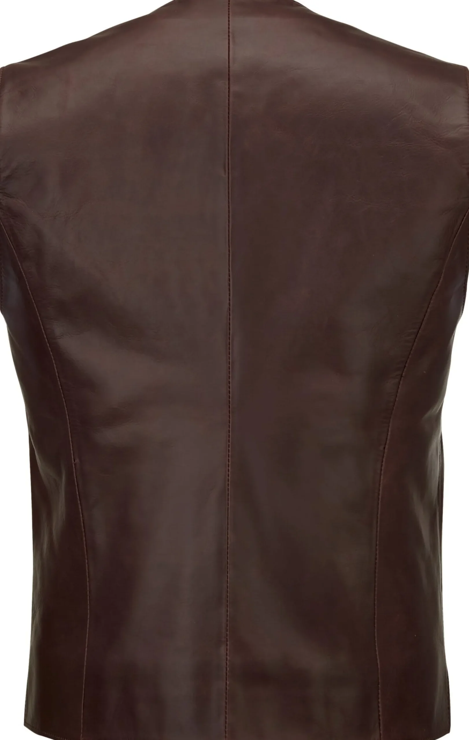 Pferdeleder (Stärke 1 mm), chromgegerbt. Kariertes Futter aus 100% Wolle. Echthornknöpfe. Hergestellt in Polen. Rückenlänge bei Größe 52 = 64,5 cm.