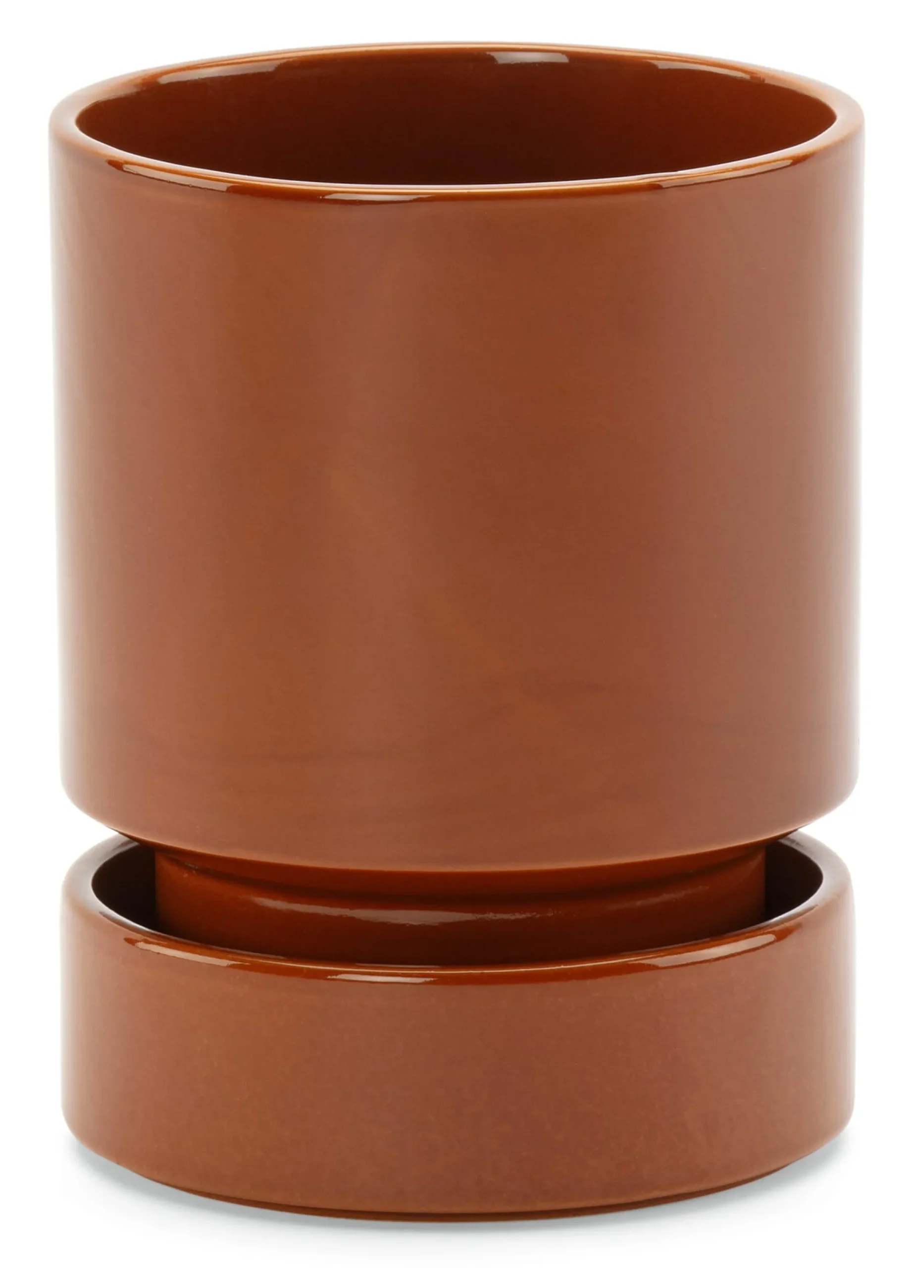 Terrakotta. Ein passender getöpferter Untersetzer wird mitgeliefert.