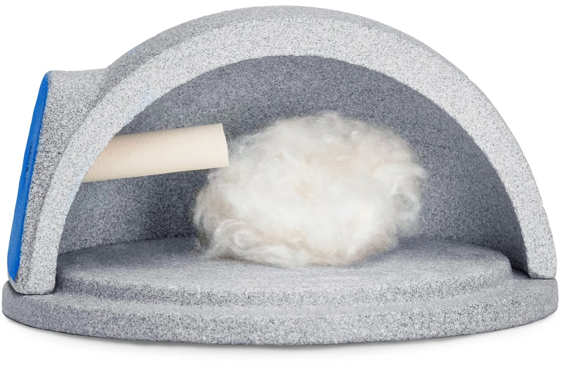 Hummeln gelten als wahre Ausdauerkünstler. Bis zu 18 Stunden am Tag verbringen sie in der Luft – und steuern in dieser Zeit bis zu 1.000 Blüten an. Als Bestäuberinsekten sind sie so für unsere Kulturpflanzen von unschätzbarem Wert. Nicht nur, dass sie die Leistung der (Honig-)Bienen oft sogar übertreffen. Sie sind auch schon sehr zeitig unterwegs, wenn es manch anderen (auch uns Menschen) noch viel zu kalt ist. Tagestemperaturen von bis zu –5 °C stellen für die temperaturunempfindlichen Brummer kein Problem dar, und anders als ihre Artgenossinnen begeben sie sich auch bei regnerischem Wetter in die Lüfte. Unser Nistkasten aus gleichermaßen frostfester wie klimaausgleichender, schimmelfreier Granitkeramik wird oberirdisch aufgestellt und bietet den im Frühjahr auf Nestsuche ausschwärmenden Hummelköniginnen eine optimale Nistgelegenheit. Eine stabile Bodenplatte schützt vor Kälte und Nässe von unten; die beiliegende Nistwolle aus Kapok-Naturfaser, in der die Tiere ihre Eier ablegen können, sorgt für zusätzliche Behaglichkeit. Das halbkugelförmige Oberteil lässt sich passgenau aufsetzen. Und falls Sie über die signalblau angemalte Tür mit dem kleinen Einflugloch staunen: Die Farbe ist mit Absicht gewählt, da Hummeln erwiesenermaßen auf Blau fliegen. Daher sollten Sie auch mit blaublühenden, nektarreichen Blumen in Ihrem Garten nicht sparsam sein, wenn Sie bei sich Hummeln ansiedeln möchten.