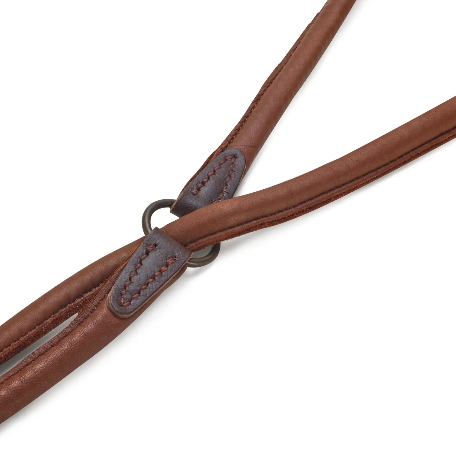 Elchleder (Stärke 2–2,2 mm), vegetabil gegerbt. Breite 1,5 cm. Farbe Braun. Einfassleder vegetabil gegerbtes Rindleder. Durchzugsweicherkette bzw. Karabiner und Ringe sind aus verkupfert patiniertem Stahl.