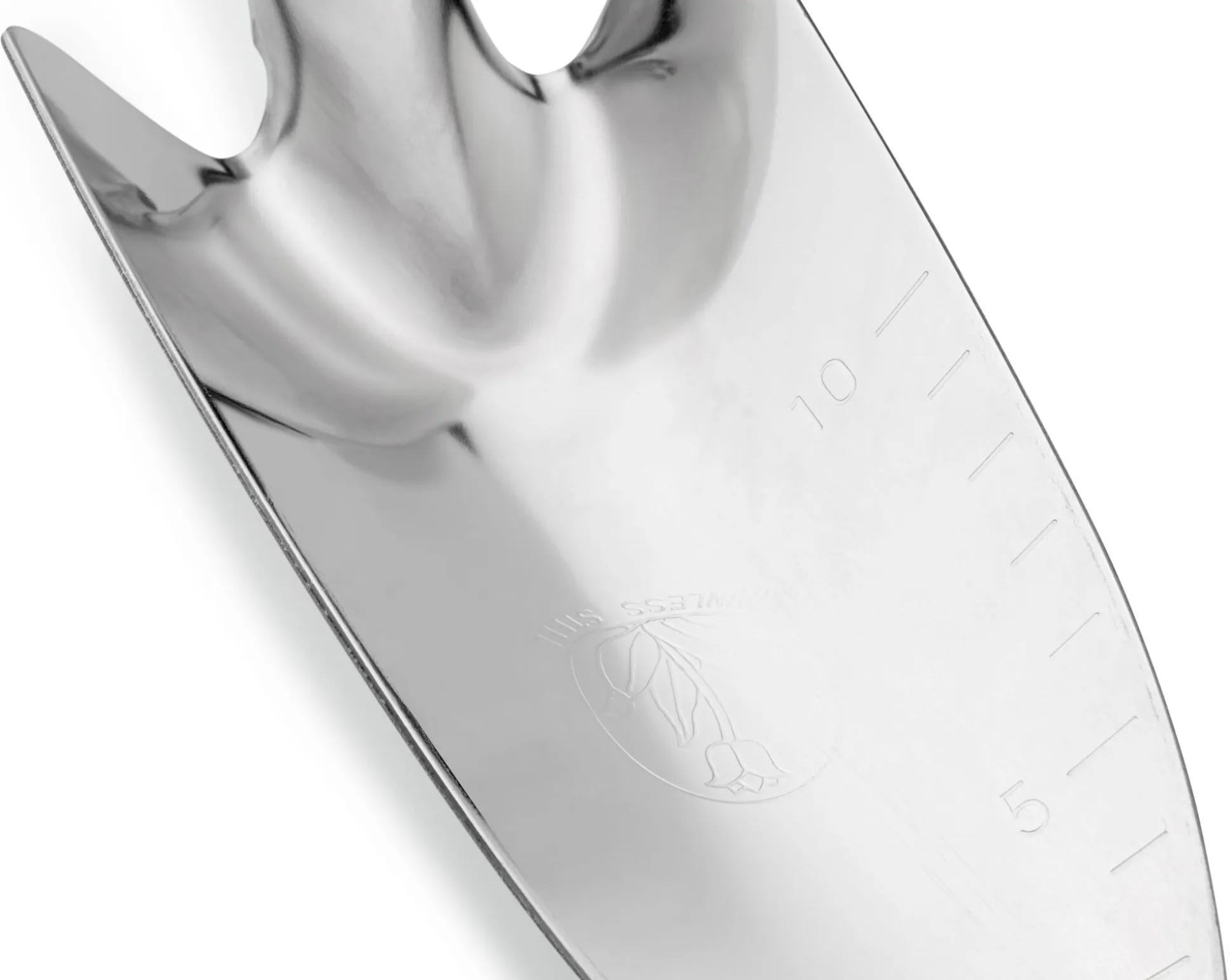Die Blumenkelle, die Sie getrost über Nacht draußen vergessen können. Sie kommt aus Japan und wird dort in Form gebogen. Das Material der Wahl zu diesem Zweck ist Edelstahl, der in einem ersten Arbeitsschritt zu Bogen angemessener Dicke verpresst wird: insgesamt ein heute seltenes Verfahren, dem aber das wetterfeste Handwerkzeug seine Stabilität und Verwindungssteifigkeit verdankt. Mit anderen Worten: Diese Blumenkelle verbiegt sich selbst unter dem Druck harter Böden kaum, noch weniger kann sie dabei entzwei gehen. Denn da sie aus einem Stück gefertigt ist, entfällt auch die bei solchen Blumen- oder Pflanzkellen allzu oft übliche Schwachstelle zwischen Griff und angesetztem Blatt. So erledigt dieses handliche, leichte Werkzeug sämtliche ihm zugedachten Aufgaben spielend. Es hilft Ihnen dabei, Pflanzlöcher für Gemüsejungpflanzen und Sommerblumen auszuheben, es unterstützt Sie beim Setzen von Blumenzwiebeln und zeigt dabei dank der auf das Blatt aufgebrachten Zentimeterskala sogar die Pflanztiefe an. Selbstverständlich können Sie diese Blumenkelle ebenso gut bei der Pflege von Topf- und Kübelpflanzen oder beim Ausbringen von Dünger, Rasenkalk, Gesteinsmehl & Co. verwenden. Einen weiteren Vorteil hat die beschriebene Art der Verarbeitung übrigens: Wo keine Lackierung, da kann auch nichts abplatzen (und eventuell rostgefährdete Stellen der Vergänglichkeit preisgeben).