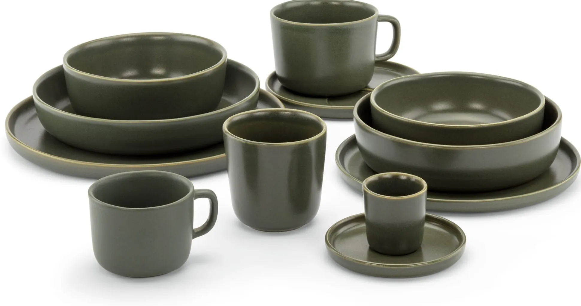 Gut zu wissen, noch besser zu gebrauchen: Bei Temperaturen über 1.200 °C im Ofen gebrannt, ist dieses Geschirr spülmaschinen-, ofen- und mikrowellengeeignet. Der Mezzeteller passt als Deckel auf die Schale sowie auf den tiefen Teller – und ja, tatsächlich, der Espressobecher kann auf dem Frühstückstisch ebenso gut als Eierbecher eingesetzt werden.