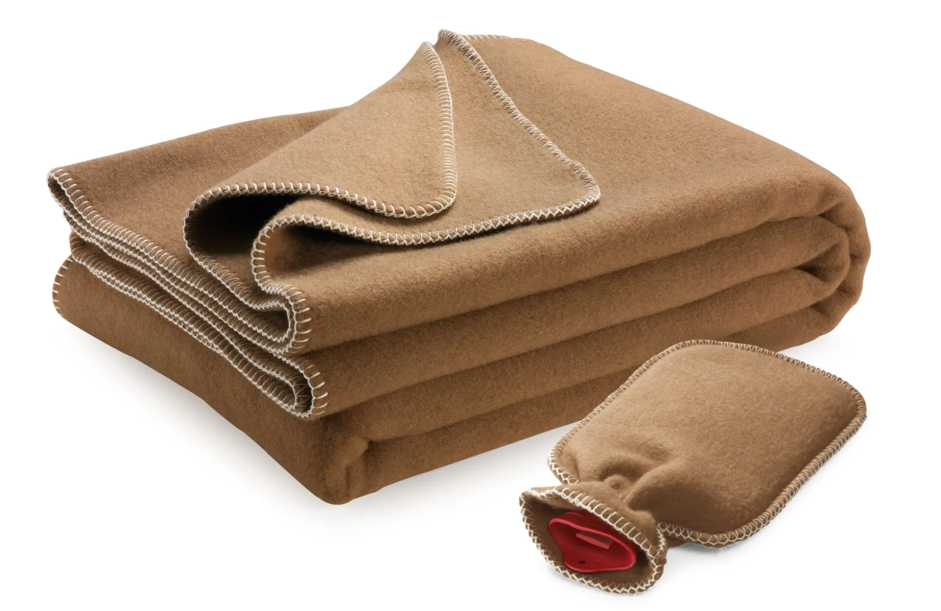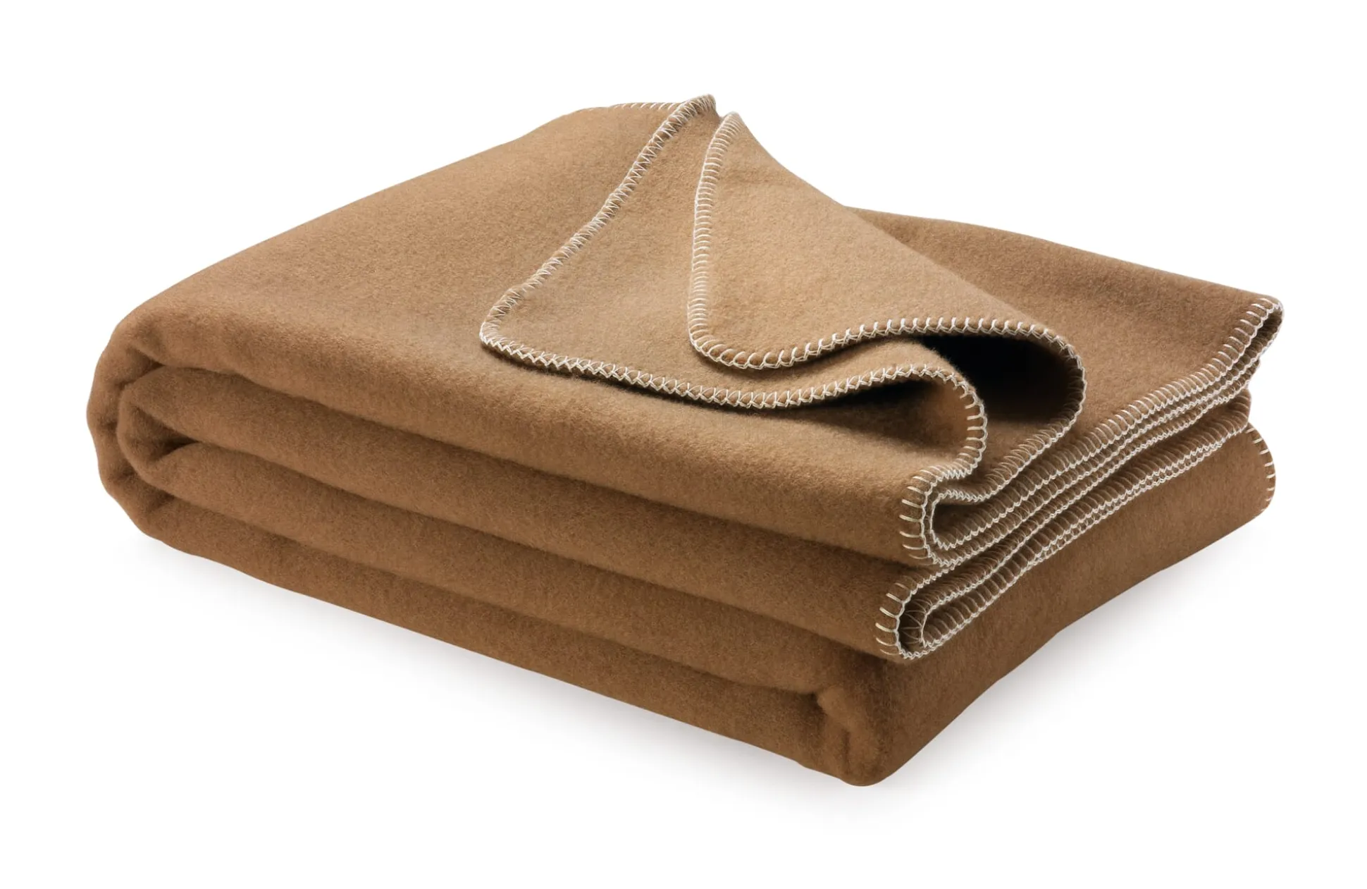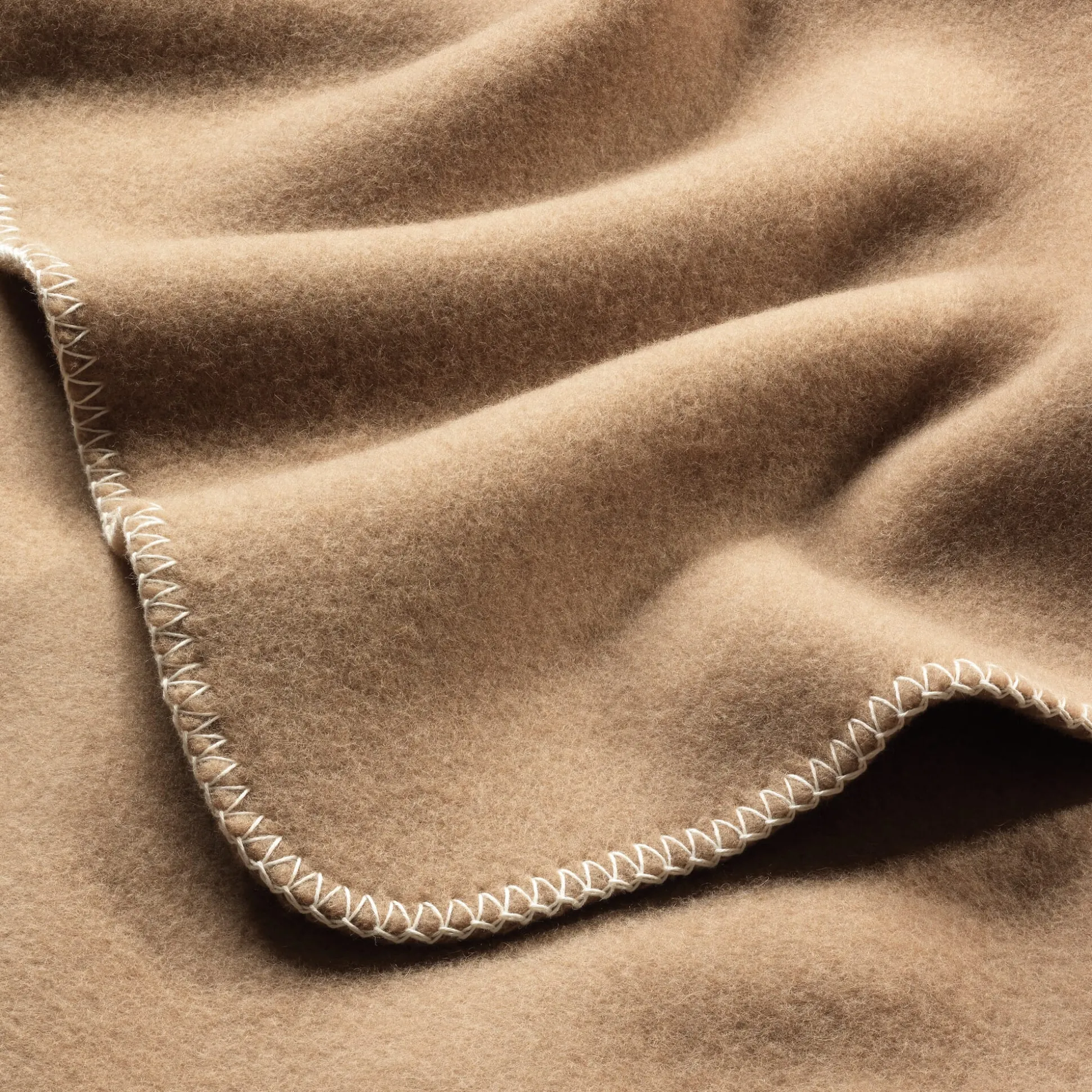 Für unsere Decke wird reines, naturbelassenes, also weder gefärbtes noch gebleichtes Kamelhaar (Faserfeinheit 19 bis 22 Mikron) verwendet. Alle Arbeitsgänge – vom Waschen und Kämmen der Wolle über das Spinnen und Weben bis zum Konfektionieren – finden in Deutschland statt.