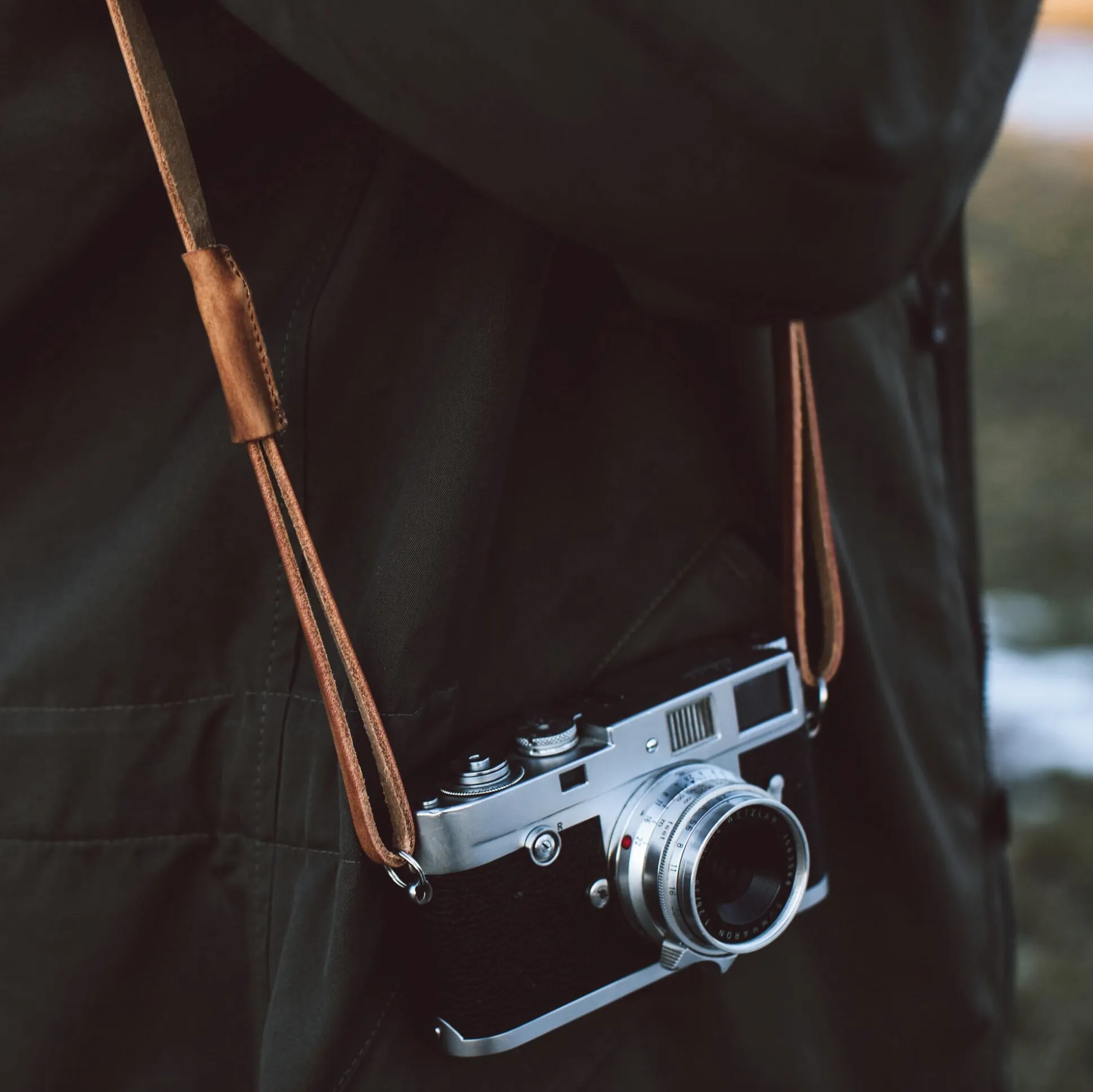 Wir bieten diesen Kameragurt in unterschiedlichen Längen an. Wer seinen Apparat gern quer über die Schulter trägt, wird die zweite wählen.