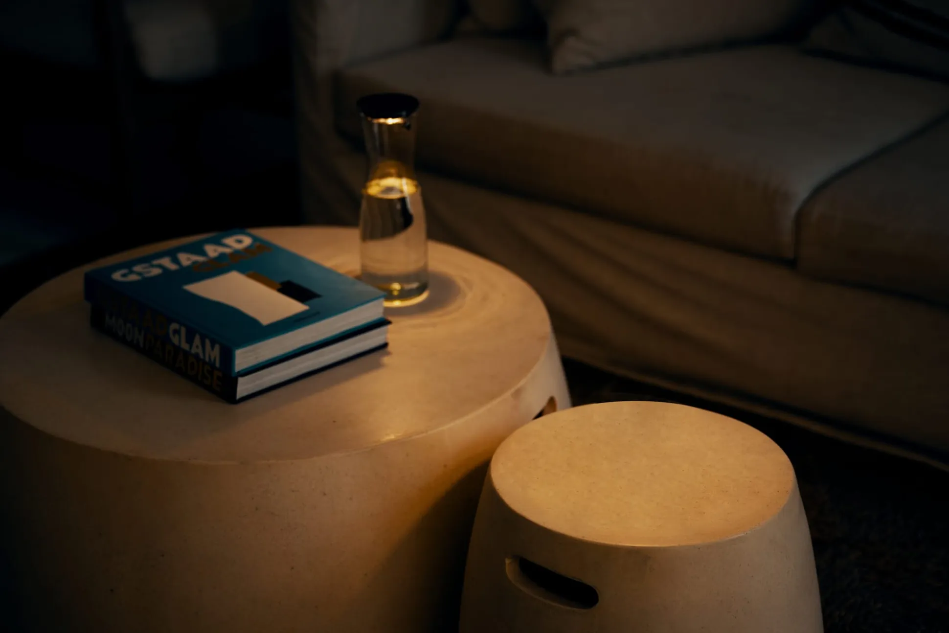 Der kleine Magnet am oberen Rand der Karaffe ist mithilfe eines extrem haltbaren UV-Klebstoffs aus der Dentaltechnik befestigt und dient als Schalter: Wird das Solarmodul in die richtige Position gedreht, schaltet das Licht an. Dreht man es weiter, schaltet das Licht aus.