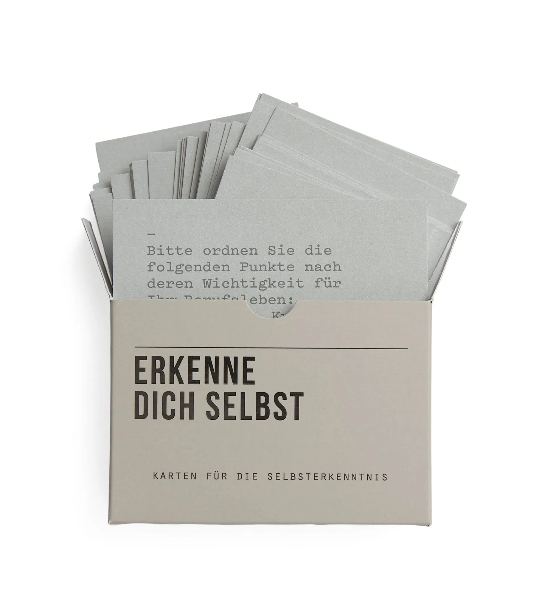 Selbsterkenntnis – trainiert anhand von klugen Fragen auf 60 schön gestalteten Karten. The School of Life ist eine global tätige Organisation, die sich der Entwicklung emotionaler Intelligenz widmet und veranschaulicht, wie sich Schlüsseleinsichten aus den Bereichen Psychologie, Philosophie und Kultur gezielt im Alltag anwenden lassen. Ihre ursprünglich in Großbritannien erschienenen Bücher und Spiele sind nun auch in deutscher Sprache erhältlich.