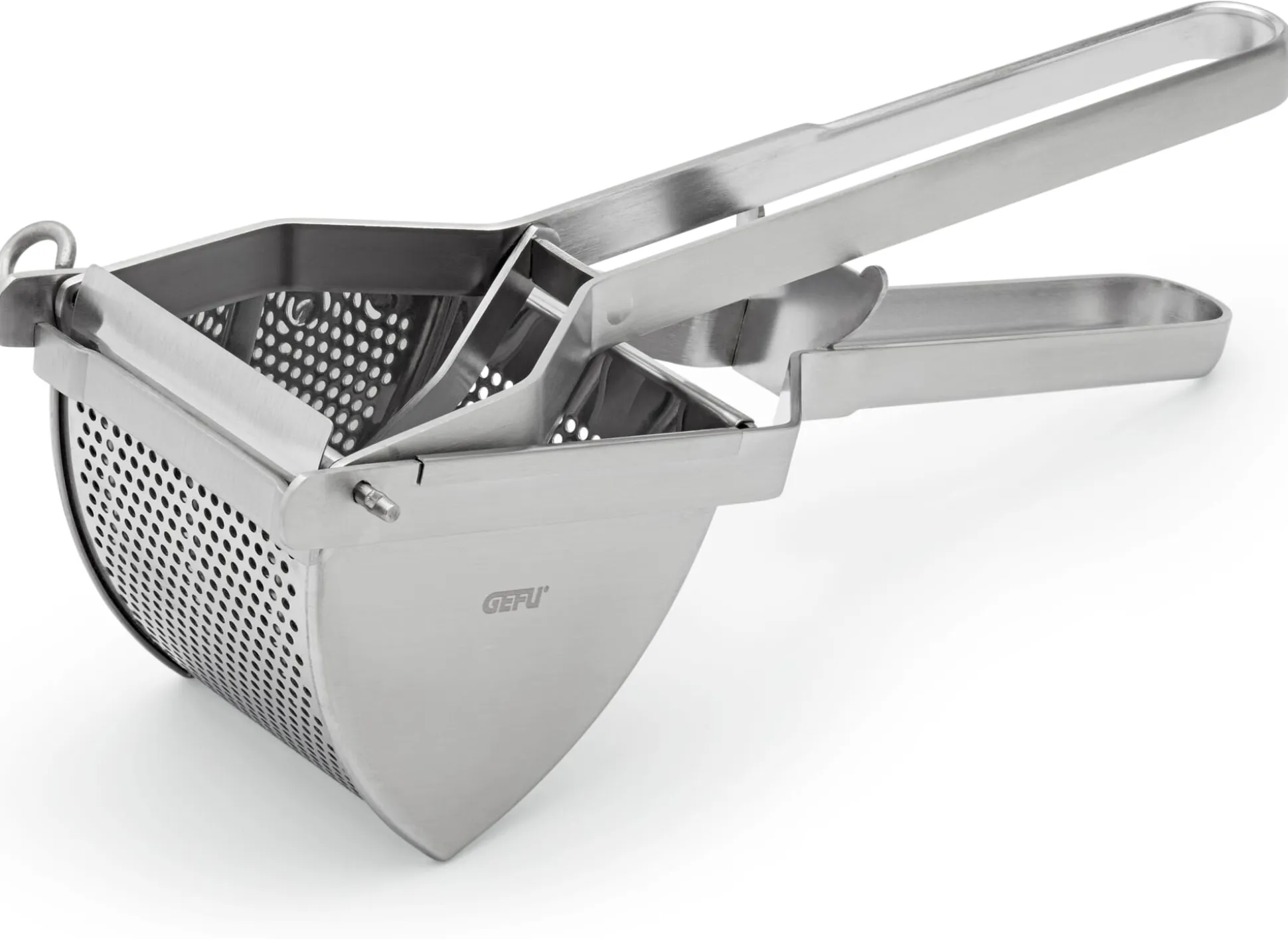 Für Kartoffelpüree: eine robuste und in ihrer Funktion sehr bewährte Kartoffelpresse ganz aus Edelstahl. Zur Reinigung können die beiden Teile einfach auseinandergenommen und genauso leicht wieder zusammengefügt werden. Für die Spülmaschine geeignet.