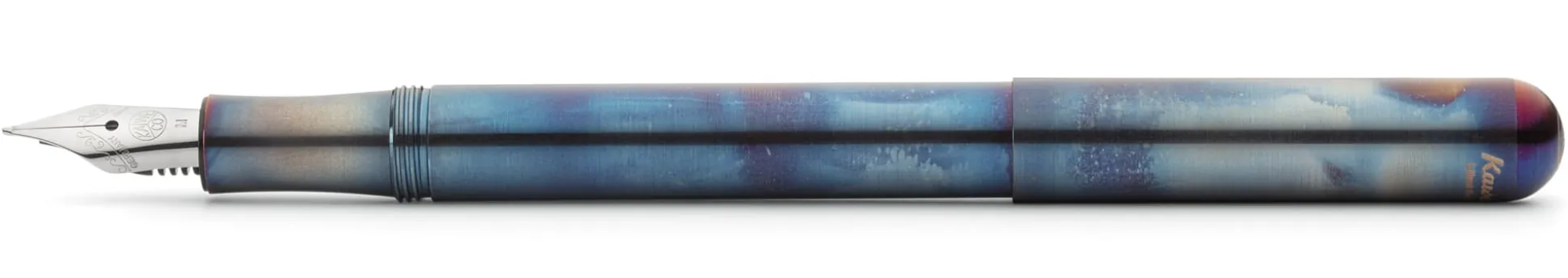 Er macht seinem Namen alle Ehre: Der Liliput passt für gelegentliche Schriftangelegenheiten in die Hand-, Hemden- und Hosentasche, ist aber auch für größere Schreibaufgaben geeignet. Wir bieten ihn hier in einer Ausführung mit Edelstahlgehäuse an. Die vorwiegend blaue, aber bei jedem Exemplar eigene Färbung ist eine sogenannte Anlauffarbe, die durch Erhitzen der Oberfläche des Edelstahls erzeugt wird. Jede Temperatur erzeugt eine spezifische Farbe, die sogenannte Anlassfarbe (wie beispielsweise bei den gebläuten Zeigern von Armbanduhren). Die farbliche Heterogenität bei diesem Füllfederhalter ist der ungleichmäßigen Erhitzung geschuldet: : Wie die Anlauffarbe ausfällt, kann nicht vorherbestimmt werden. Das Erscheinungsbild jedes einzelnen Kaweco Liliput ist damit so individuell wie die Schrift seiner Besitzerin bzw. seines Besitzers.