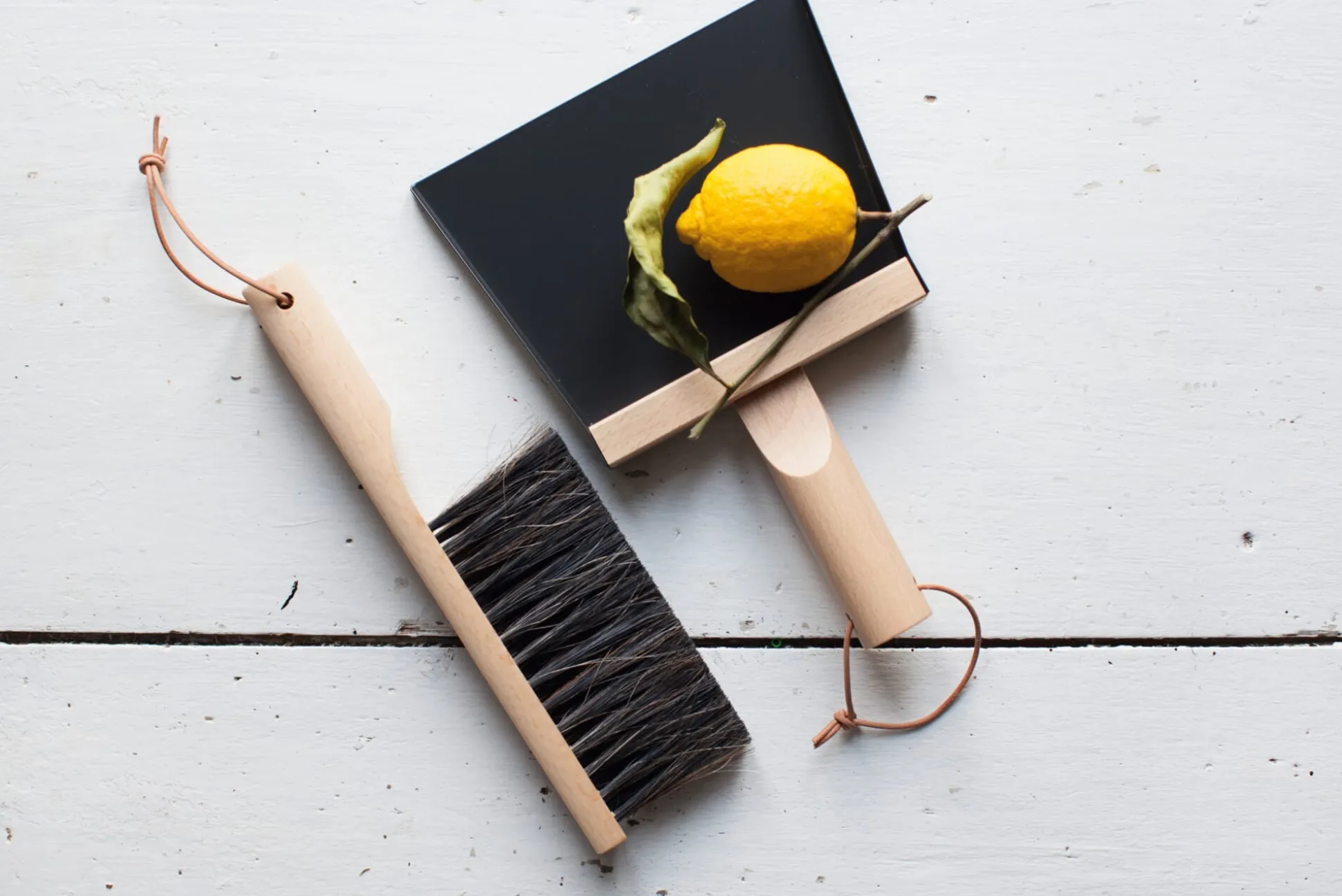 Passend zum Handfeger: in zeitgenössischer Gestaltung, gefertigt in der Bretagne. Der massive, zylindrisch geformte und gut zu handhabende Griff ist baugleich mit dem Griffteil des Handfegers. Mit Lederband zum Aufhängen.