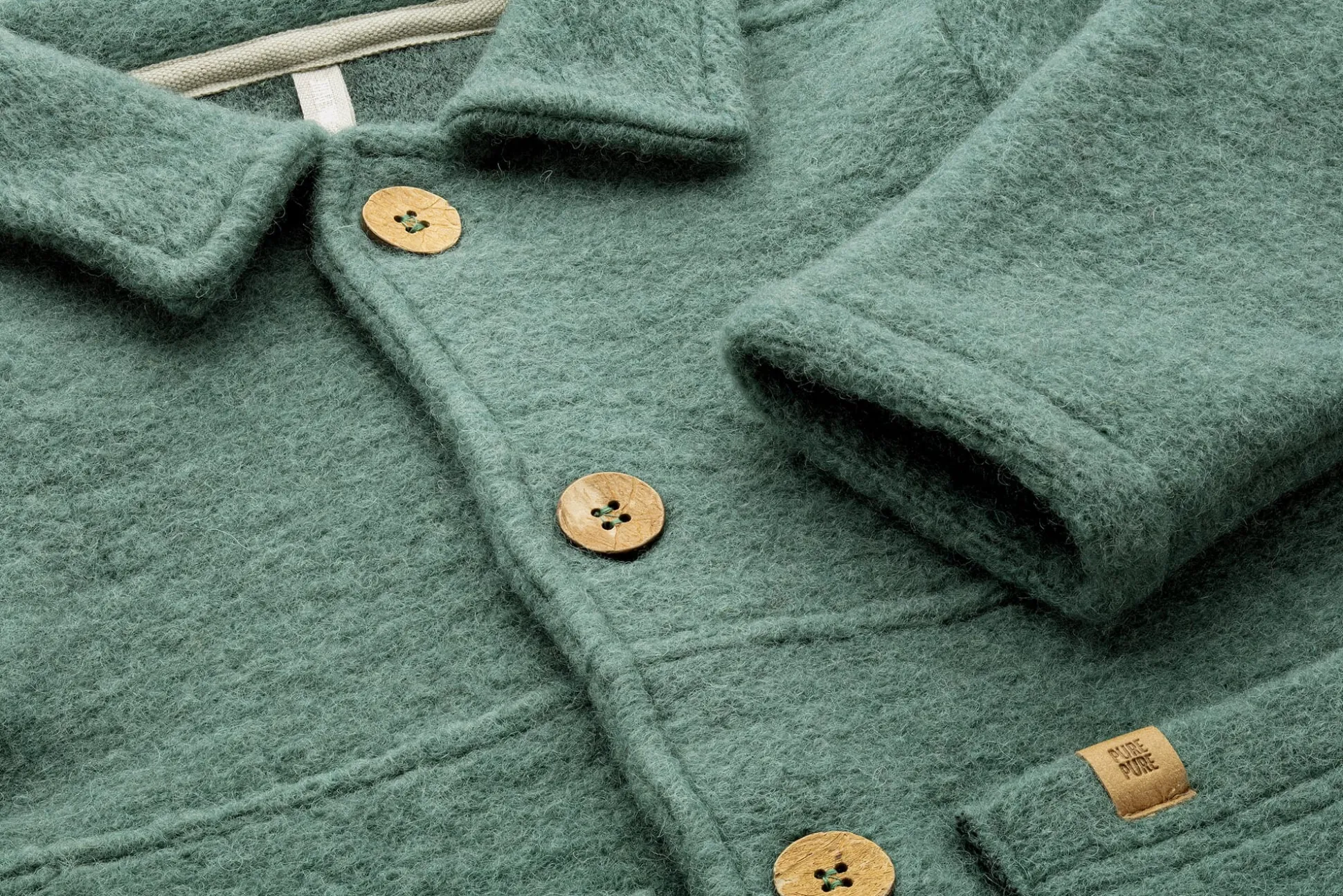 Kombinationsfreudig und damit wie geschaffen, um Ihr Kind mit einem vielseitig tragbaren Basic auszustatten. Denn stilistisch hält die Hemdjacke die Balance zwischen lässig-legerem Chic und festlich-feiner Aufmachung. So ist Ihr Kind jedem Anlass entsprechend gekleidet und wird sich zugleich rundherum wohlfühlen: Der dicht gearbeitete, dennoch atmungsaktive Wollwalk besteht zu 80% aus Schurwolle, die wärmt, zugleich Feuchtigkeit abhält und temperaturausgleichend wirkt. Der 20%ige Anteil an Bio-Baumwolle bringt zusätzlich bewegungsfreundliche Geschmeidigkeit ins Material. Das oftmals gefürchtete Jucken, Kratzen oder Kneifen gehört damit ebenso der Vergangenheit an wie unerwartetes Frieren oder Überhitzen. Zum hohen Tragekomfort trägt auch der klassisch gerade Schnitt der Hemdjacke bei, der Ihrem Sprössling erlaubt, unbeschwert umherzuspringen, ohne sich beengt zu fühlen. In den beiden großen, aufgesetzten Taschen kann Ihr Kind seine Hände aufwärmen (falls es die Handschuhe vergessen haben sollte) oder auch die besonders spannenden Fundstücke des Tages sammeln (vielleicht suchen Sie sie lieber regelmäßig nach Regenwürmern ab). Der Kragen lässt sich hochschlagen – nicht, um den coolen Auftritt Ihres Sprösslings zu unterstreichen (was natürlich ebenfalls möglich wäre), sondern vor allem, um seinen Nacken gegen zugige Winde zu schützen.