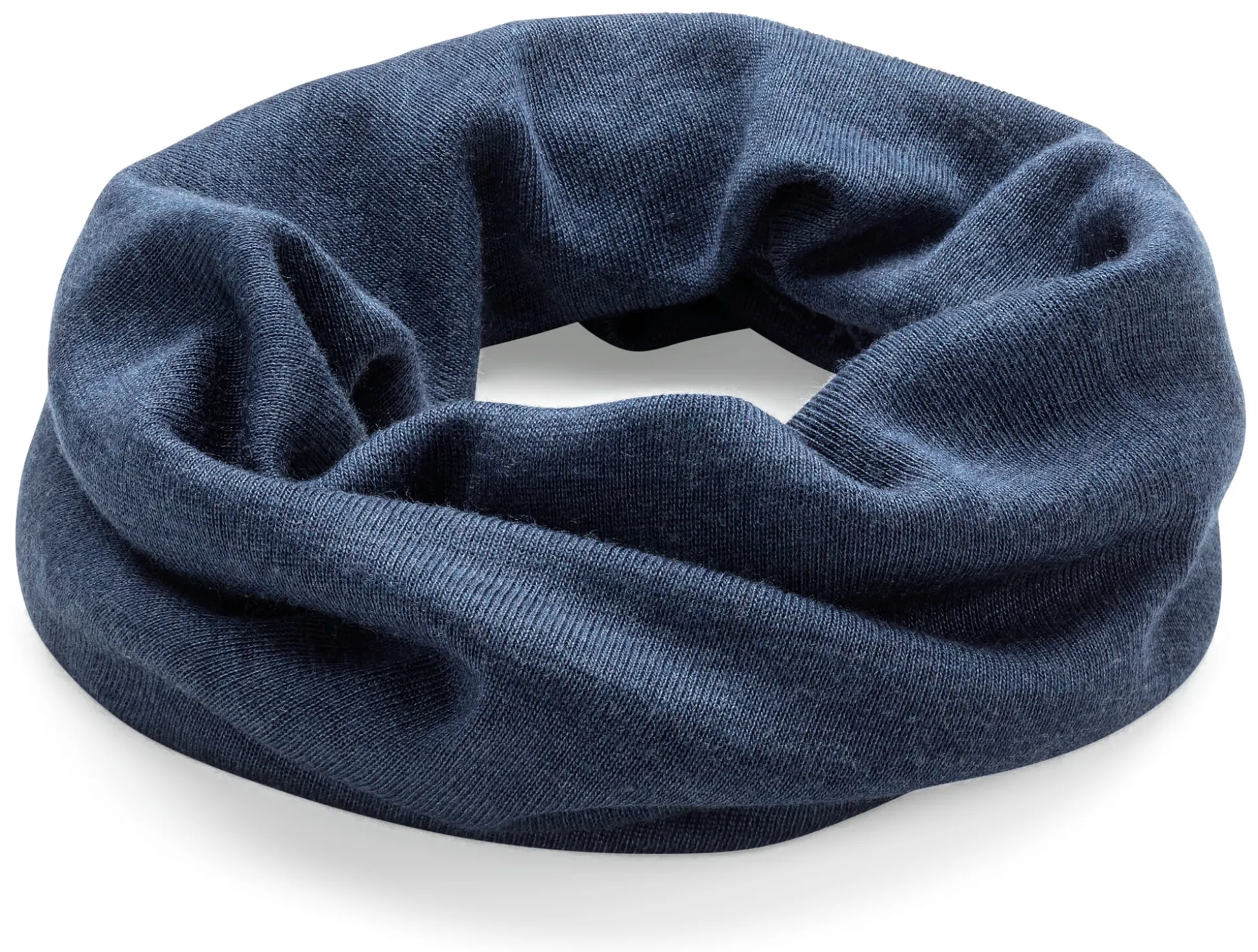 Zumal wenn er, wie dieser Schlauchschal, aus hautfreundlichen, atmungsaktiven Naturmaterialien gefertigt ist: aus Merinowolle (aus kontrolliert biologischer Tierhaltung) und Seide. Merinowolle wirkt von Natur aus temperaturregulierend. Sie wärmt bei kaltem und kühlem Wetter, da die gekräuselten Fasern der Merinowolle die natürliche Körperwärme überaus effektiv speichern. Steigen die Temperaturen, so können die feinen Merinowollfasern viel Körperfeuchtigkeit aufnehmen und sie mit kühlendem Effekt an die Umgebung ableiten. Zudem ist dieser Loop enorm elastisch – zum einen dank des Feinrippgestrick, zum anderen dank der natürlichen Dehnbarkeit der Merinowolle. Daher lässt sich der Loop mühelos über den Kopf streifen, er schmiegt sich leicht und weich um den Hals und ist sehr angenehm zu tragen, ohne an der empfindsamen Halspartie ein Engegefühl hervorzurufen. Seidig-glatt und hautfreundlich tragen auch die atmungsaktiven, ausgesprochen reißfesten Seidenfasern zum hohen Tragekomfort des Schlauchschals bei und erhöhen außerdem die Langlebigkeit des Feinripp.