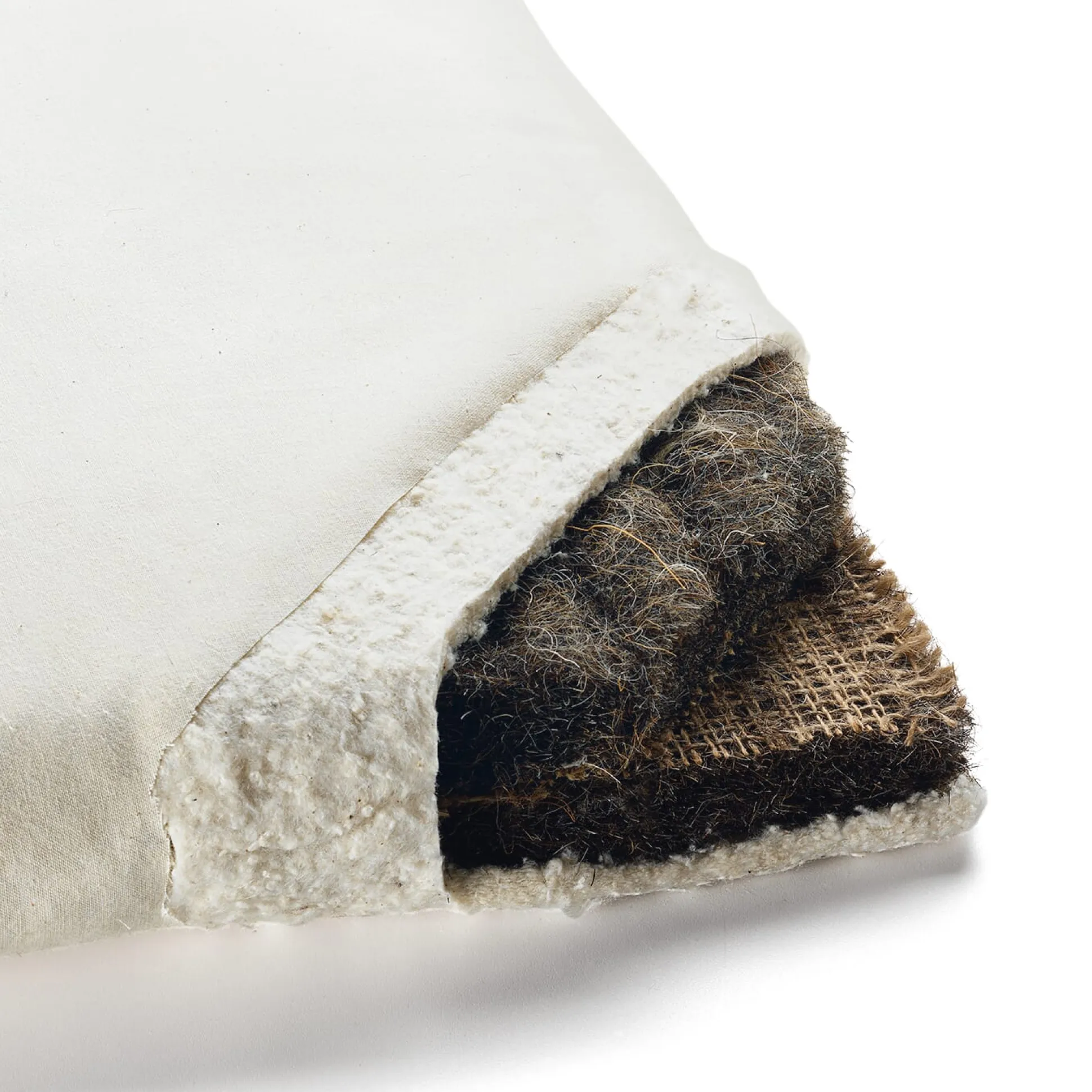 100% Rosshaar auf Jutegewebe; mit einer Auflage aus 100% Baumwolle. Im Nesselinlett mit Reißverschluss. Gefertigt in Deutschland.