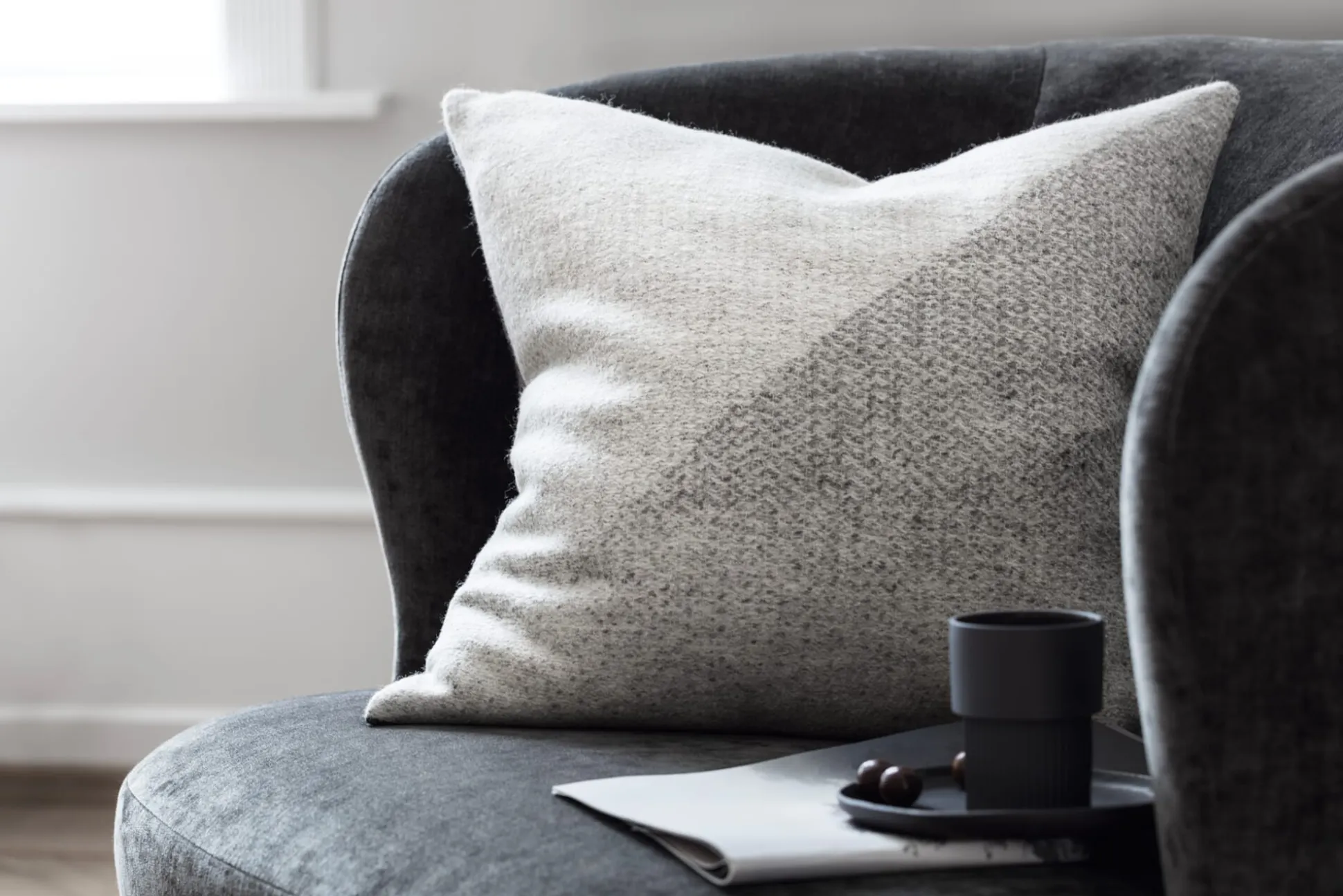 Aus Norwegen: Kissen im quadratischen Format mit raffiniertem Farbverlauf in traditioneller Weise gewebt. Ohne Füllung.