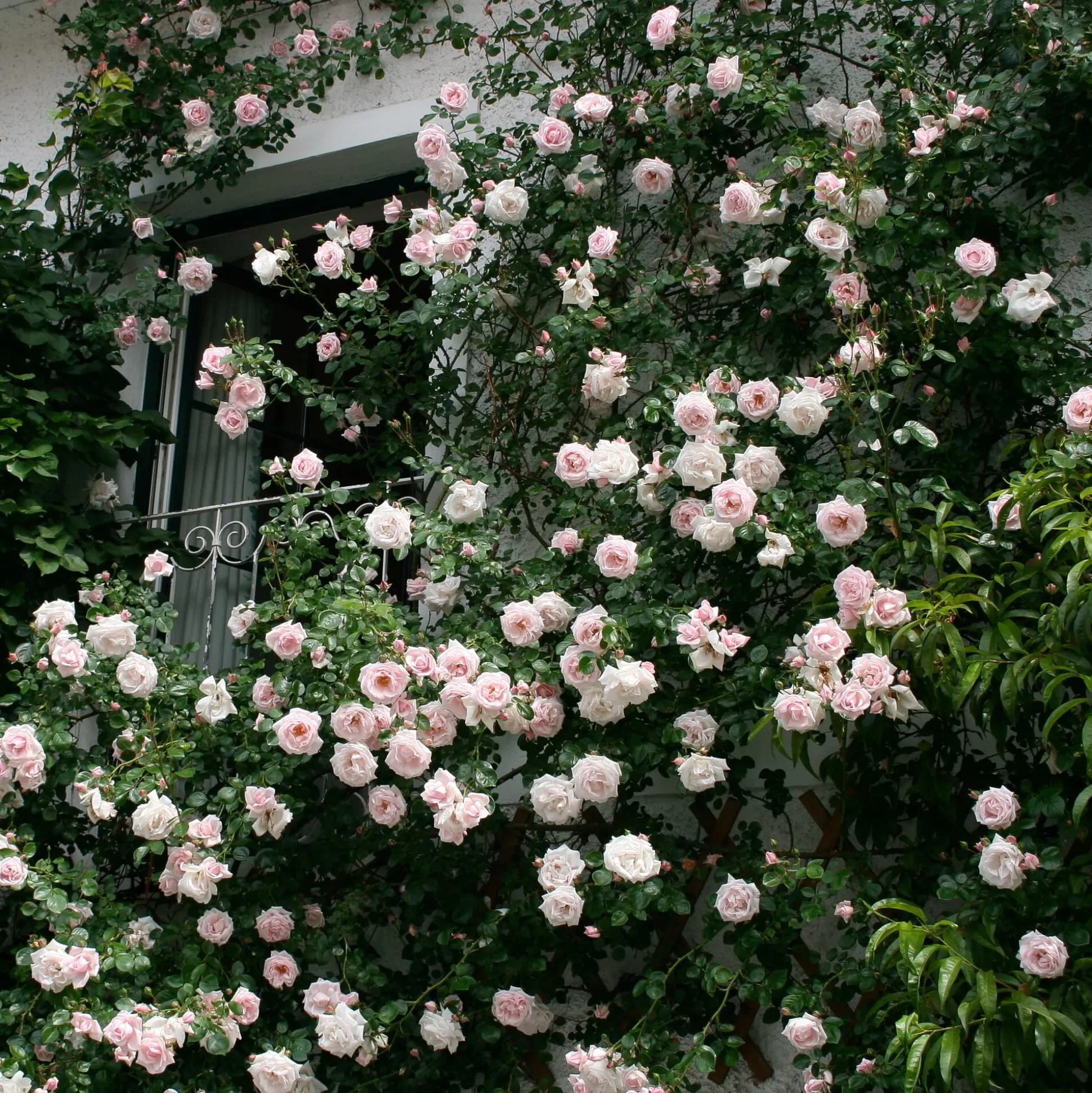 Diese englische Züchtung von 1930 gilt als eine der besten Kletterrosen, weshalb sie 1997 sogar zur „Weltrose“ gekürt wurde. Sie bildet lange, überhängende Blütentriebe und blüht mit einer kurzen Unterbrechung im Sommer zuverlässig von Anfang Juni bis Mitte Oktober. Die perlmuttrosafarbenen Blüten sind edelrosengleich, gut gefüllt, haltbar und duftend; nach dem Verblühen fallen sie ab, sodass die Pflanze immer ein schönes Bild ergibt – auch durch die dichte Belaubung mit glänzend dunkelgrünen Blättern.