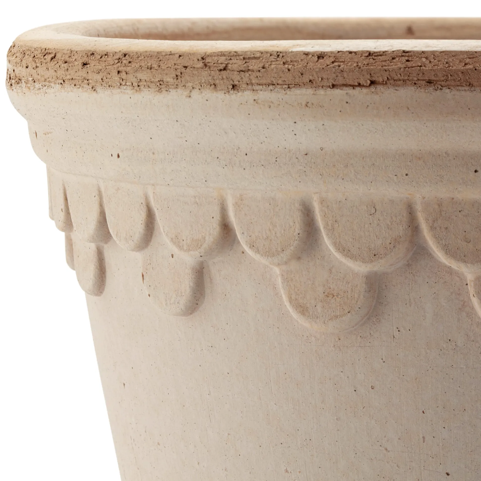 Als Victor Berg 1942 in Kopenhagen sein Keramikgeschäft erbte, war es ihm ein besonderes Anliegen, den Alltag seiner Mitmenschen in grauen Zeiten ein wenig bunter zu gestalten. In den Worten des dänischen Dichters Hans Christian Andersen: „Leben allein genügt nicht, sagte der Schmetterling. Sonnenschein, Freiheit und eine kleine Blume muss man haben.“ So hielt Berg in seinem Geschäft immer einen Strauß Vasen und Töpfe vor und erweiterte das Sortiment zugleich um Schnittblumen. Das mochten die Kopenhagener*innen – mit den Jahren kamen einige Läden in der dänischen Hauptstadt hinzu, und schließlich auch Pflanz- und Übertöpfe nach eigenen Entwürfen. Denn als die Kinder von Victor Berg in den 1980er Jahren in das Familienunternehmen einstiegen, begannen sie, eigene Ideen – zunächst inspiriert von historischen Vorlagen, die sie überall in Europa fanden – in Terrakotta formen zu lassen. Zu diesem Zweck arbeitet Bergs Potter bis heute mit Traditionstöpfereien in der Toskana, genauer gesagt in Lucca, und inzwischen auch in Portugal zusammen; eine Tradition, die mittlerweile von der dritten Generation Berg mit viel Einsatz fortgeführt wird. Bevorzugter Werkstoff ist der berühmte südtoskanische Galestro-Ton, der reich an Mineralien ist und als besonders frostfest gilt. Einmal gebrannt, kann bereits die unglasierte Terrakotta Schattierungen zwischen Rot und Rosa, Grau und Weiß zeigen – eine ansprechende natürliche Patina, die nur dieser Ton besitzt. Für die Gesundheit Ihrer Topfpflanzen zudem von Vorteil: im Ton enthaltene Carbonat- und Kaliumsalze gewähren eine gute Durchlässigkeit, was insbesondere die Entwicklung des Wurzelwerks positiv beeinflussen kann.