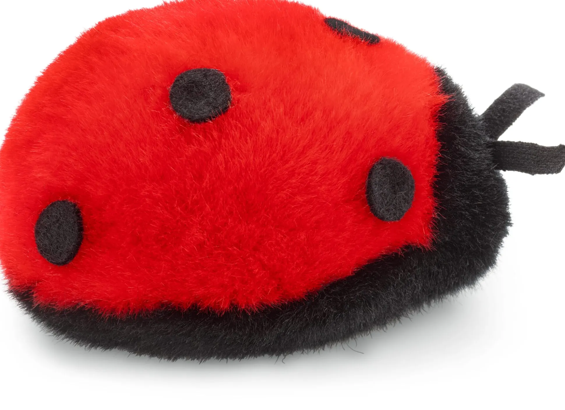 Dieser Marienkäfer wird sich zwar nicht an Ihrer Grünpflege beteiligen, macht sich aber umso schöner als handlicher, schmiegsamer Freund für Menschen jedes Alters und natürlich als mobiler kleiner Glücksbringer.