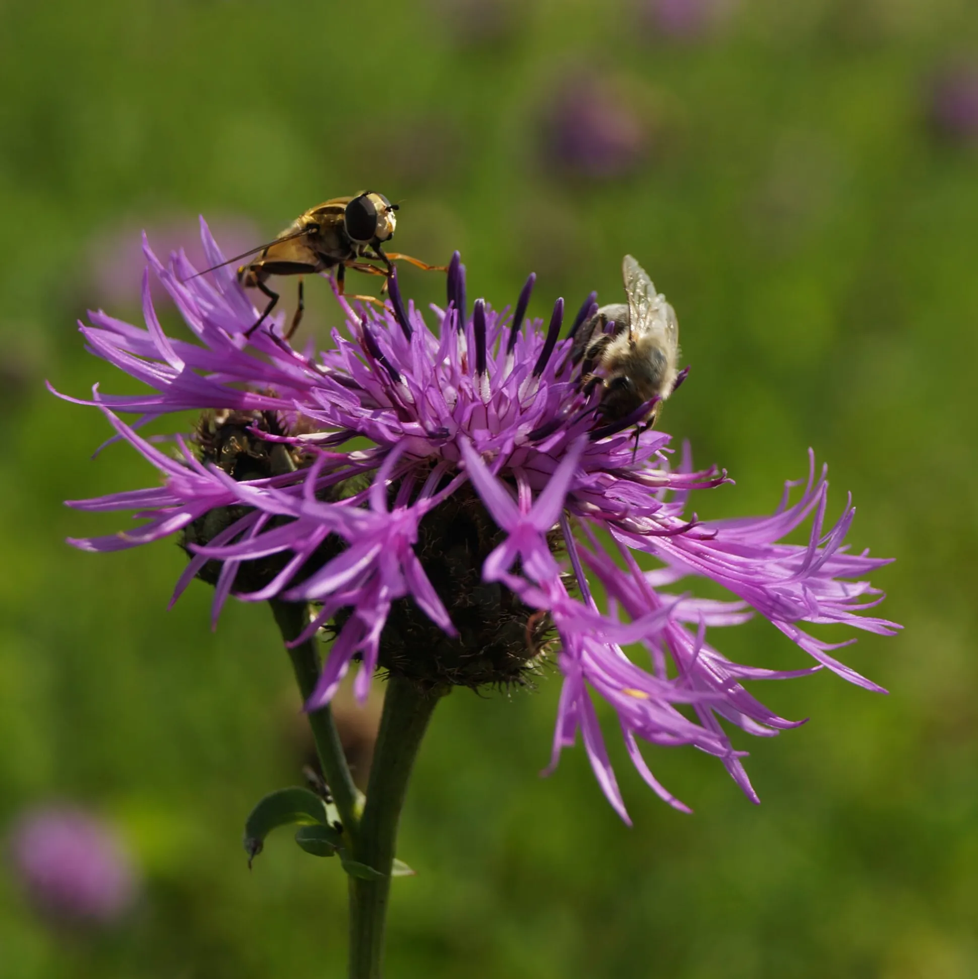 Die relativ großen purpurfarbenen Blüten dieser Flockenblume sind sowohl Augenweide für uns als auch Pollenweide für zahlreiche Insekten. Einige Falter sind sogar auf diese eine Art spezialisiert und benötigen sie zum Überleben. Wie alle Flockenblumen ist auch diese sehr anpassungsfähig und robust und durch ihre reichliche Selbstaussaat verwildert sie schnell. Sie blüht von Juni bis August und wird, je nach Bodenbeschaffenheit, 30–90 cm hoch.