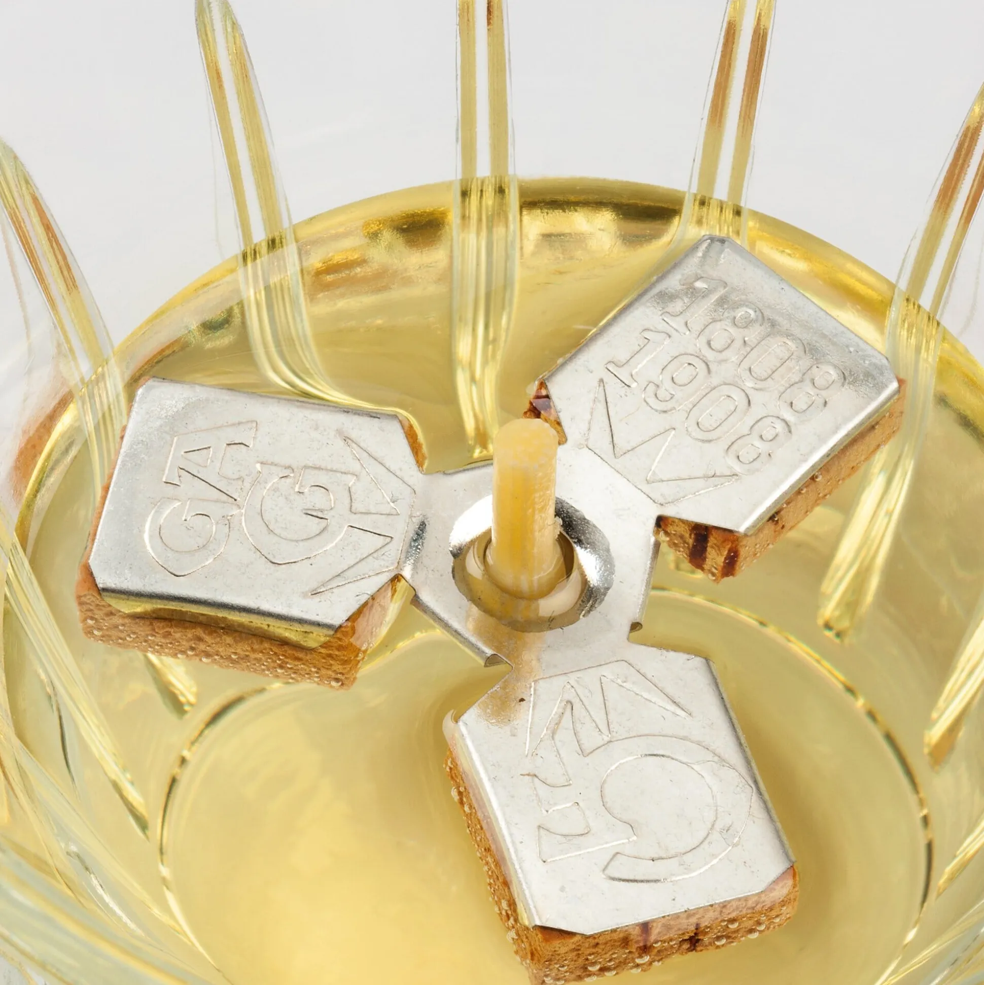 Solch ein Öllicht ist mit wenigen Handgriffen einsatzbereit: Man füllt ein geeignetes Gefäß mit Wasser und gibt einen Fingerbreit reines Pflanzenöl darauf. Anschließend steckt man einen Docht in einen Korkschwimmer (der immer wieder verwendet wird) und setzt diesen gerade auf die Ölfläche, bevor man die Dochtspitze entzündet. Mit nur 10 ml Öl brennt der Schwimmdocht zwei Stunden, mit einer Literflasche Salatöl also um die 200 Stunden. Dabei entsteht praktisch kein Ruß, kein Geruch und nur so viel Kohlendioxid, wie beim Wachsen der Pflanzen in diesen gebunden wurde. Ist der Docht verbraucht, wird er einfach ausgetauscht. Wir bieten kurze Nachtlicht-Dochte aus Baumwollgarn, ummantelt mit Paraffin und Bienenwachs, sowie dreiflügelige Korkschwimmer von Glafey aus Nürnberg an. Beide werden seit 1867 hergestellt und sind – wie der Hersteller noch Anfang des 20. Jahrhunderts in die Welt posaunte – „Zu haben in jedem besseren Geschäfte.“ Die Tatsache, dass es sie nach über 150 Jahren immer noch gibt, bürgt für ihre Qualität.