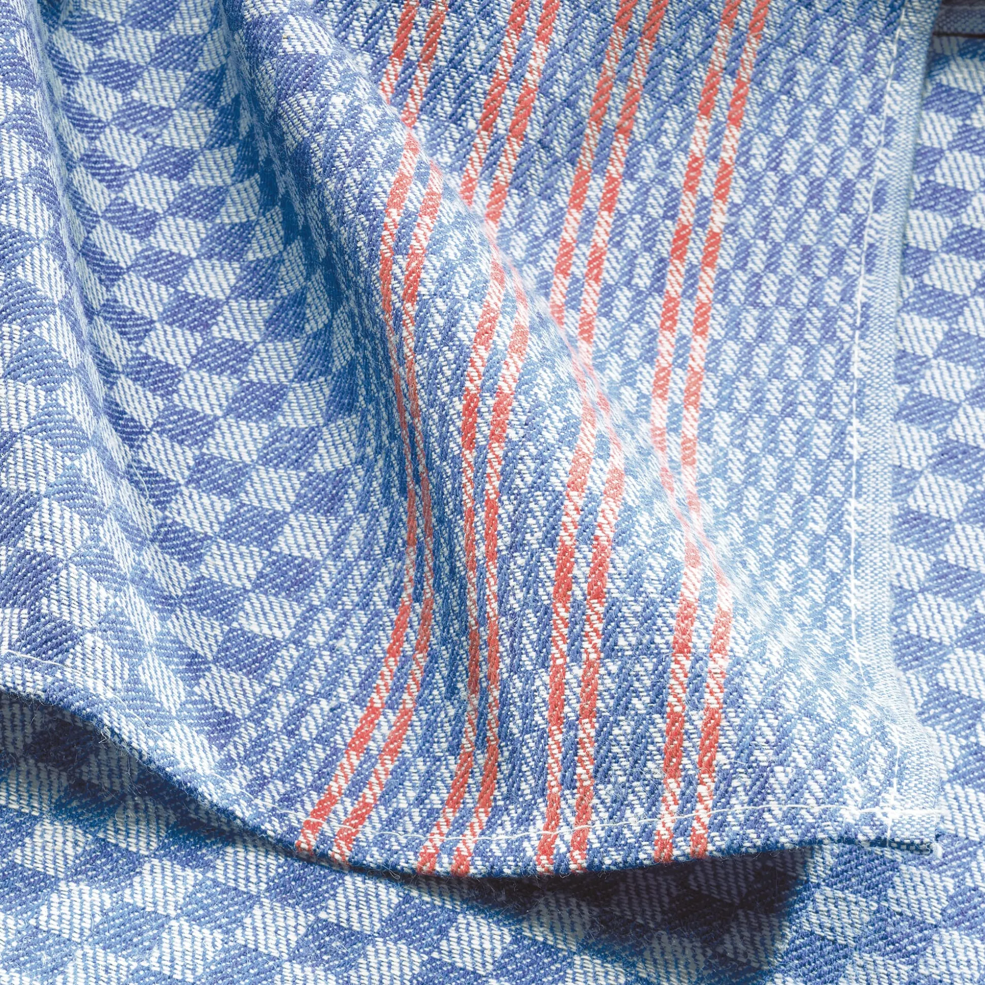 Im Ruhrgebiet heißt es Grubentuch und fehlte einst in keines Bergmanns Kaue. Dank des äußerst langlebigen und robusten Gewebes findet es sich mittlerweile auch in vielen Haushalten anderer Regionen und Länder. Noch öfter ist es in der professionellen Gastronomie anzutreffen – was zeigt, wie strapazierbar das Geschirr- und Händetuch ist. Dieses Grubentuch wird aus einem kräftigen Halbleinen in Halbzwirnqualität in versetztem Köpergrat gewebt, typisch gedeckt blau-hellblau kariert und im Rand rot abgesetzt. Das Leinen stammt aus Europa.