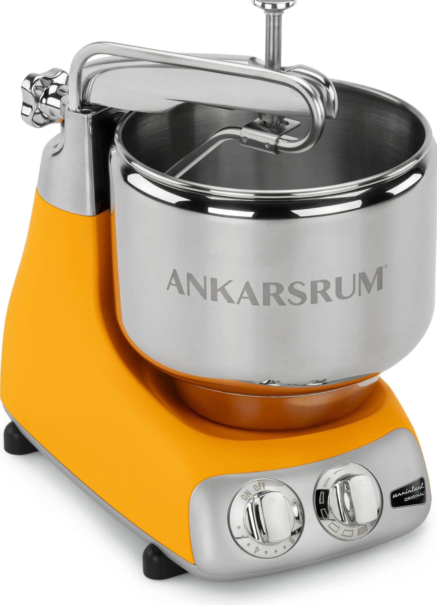 Den Schweden wird im Allgemeinen nachgesagt, ein backverrücktes Volk zu sein. Das scheint nicht aus der Luft gegriffen, ist doch der Flughafen Arlanda in Stockholm nicht der einzige Ort in der Hauptstadt, an dem ein „Sauerteig-Hotel“ die fachgerechte Aufbewahrung des familieneigenen Sauerteigvorrats in der Urlaubszeit übernimmt. So erklärt sich wohl auch, dass in Schweden seit 80 Jahren eine wirklich gute Knet- und Küchenmaschine produziert wird. Die Ankarsrum kam 1940 auf den Markt. In ihren Anfangsjahren wurde sie noch unter dem Namen „Electrolux Ankarsrum Assistent“ hergestellt und verkauft. Wiewohl ihre Motorleistung sich mit den Jahren vervielfacht hat – von ursprünglich 400 auf heute 1.500 Watt –, hat sich an ihrem Grundaufbau wenig geändert. Langsames und intensives Kneten, und das auch über längere Zeit, ist nach wie vor die Spezialität dieser Maschine. Die großen Profi-Geräte aus dem Bäckereibedarf arbeiten nach einem ganz ähnlichen Prinzip. Der entscheidende Unterschied zur üblichen Haushaltsmaschine: Der Knethaken bleibt fest. Nur die solide, stolze sieben Liter fassende Edelstahlschüssel wird in Rotation versetzt und dreht sich bei laufendem Motor ausdauernd um die eigene Achse. Die Teigmasse macht diese Bewegung mit, wird währenddessen gleichmäßig durchgearbeitet, umgewälzt und in sich gefaltet – sie wird besser „gegriffen“, wie der Bäcker sagt, und dabei intensiv ausgeknetet. Ein Abstreifer hilft dabei, den Teig stetig vom Rand der Schüssel weg in die Mitte zu transportieren. Auf diese Weise wird der Vorgang des Handknetens, bei dem der Teig in der Knetschüssel oder an der Tischplatte gerieben wird, perfekt nachgeahmt und eine gleichmäßige Teigbildung gefördert.