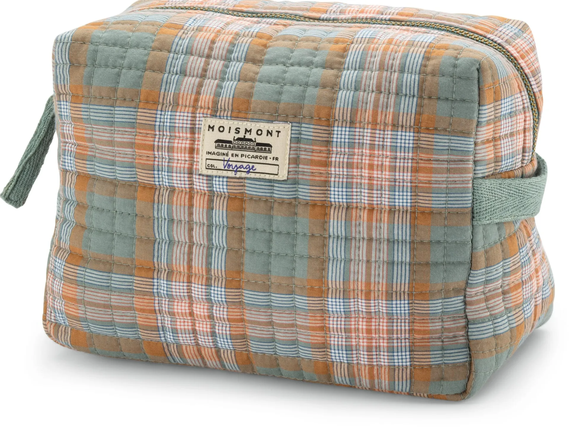 Ein ungewöhnlich schmiegsames, geradezu knautschbares und leichtes Necessaire, das Ihre Hygiene- und Kosmetikartikel mit aller Weichheit schützend beisammen hält. Zwei Lagen aus strapazierbarer Baumwolle sind hier miteinander versteppt, sodass die Wattierung zwischen den Stofflagen nicht verrutschen kann und den Inhalt allseitig wie ein feiner Airbag umschließt. Mit seinem Volumen von knapp zwei Litern nimmt der Kulturbeutel Artikel wie Zahnbürste und Rasierhobel, Shampoo und Nageletui mühelos auf. Ein aufgenähtes Einsteckfach im Innern hält auch die kleinsten unter den Kleinutensilien auffindbar; der obere Rand des Fachs ist in der Mitte angenäht, sodass über den Rand hinausragende Tuben oder Fläschchen auch hier aufrecht vorgehalten werden können. Und sollten Sie den Kulturbeutel gerade nicht benötigen, so lässt er sich klein und fein zusammenlegen (oder auch zusammenknautschen) und platzsparend in Schrank und Schublade verstauen.