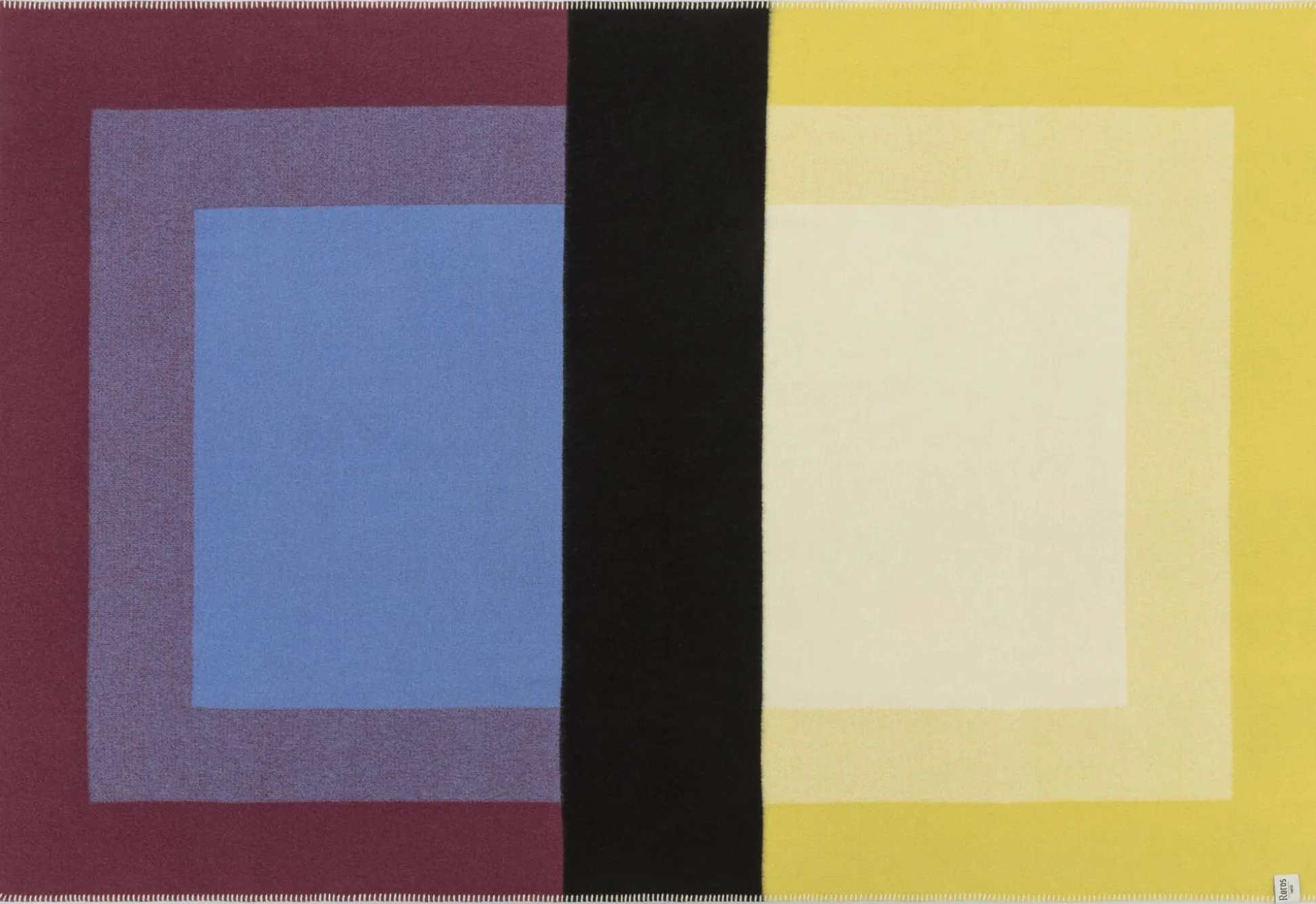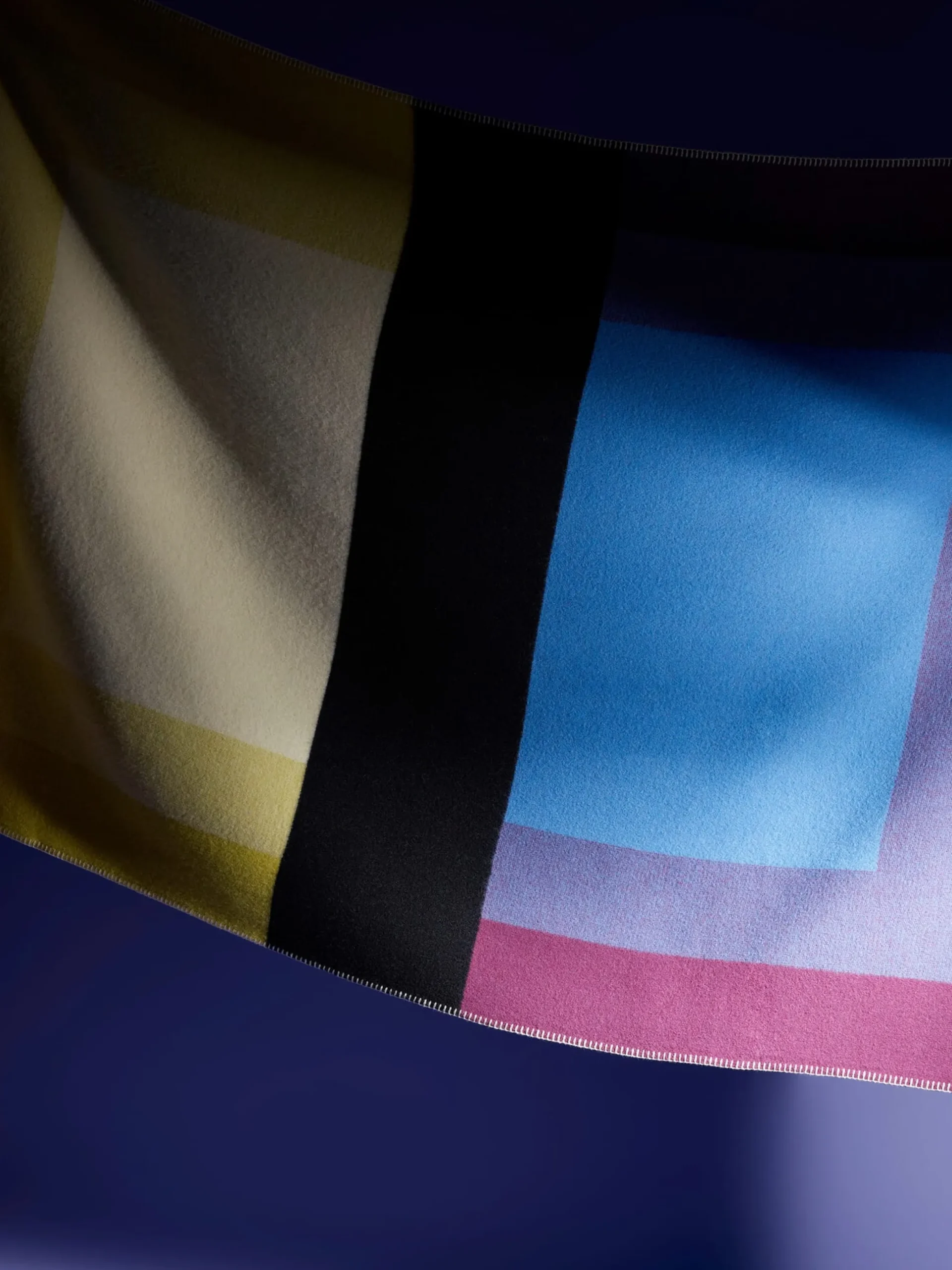 „Stilsicher, ausdrucksstark, harmonisch in Farbe und Muster“ könnte die Kurzfassung für die Dessins der Røros-Tweed-Wolldecken lauten. Dabei zeichnen ganz unterschiedliche Designer*innen verantwortlich. Und so verschieden ihre Arbeiten auch sind, haben doch alle Lust am Spiel mit Farben und ein gleichgeartetes, sicheres Gespür für grafische Kompositionen. Kristin Five Melvær ist bereits mit einigen Dessins bei Røros Tweed vertreten, auch der Entwurf für die Bento-Serie stammt aus ihrer Feder. Leicht zu erkennen an den klaren Linien, den ausdrucksvollen Farbkombinationen und außergewöhnlichen Details, die gleichmäßige Strukturen aufbrechen und Kontrapunkte setzen: Hier ist es der markante schwarze Balken, der die Farbrahmen und -flächen auf der Hälfte unterteilt. In Kombination mit dem Namen lässt uns das Dessin sogleich an die japanische Lunchbox denken, für die solch klare Unterteilungen (neben dem optisch ansprechenden Arrangement der Speisen darin) typisch ist. Das Muster der Bento-Lammwolldecke erscheint aufgrund der Webung als Doubleface auf der anderen Seite gegengleich. So lässt sich die Decke als variabler Farbakzent einsetzen.