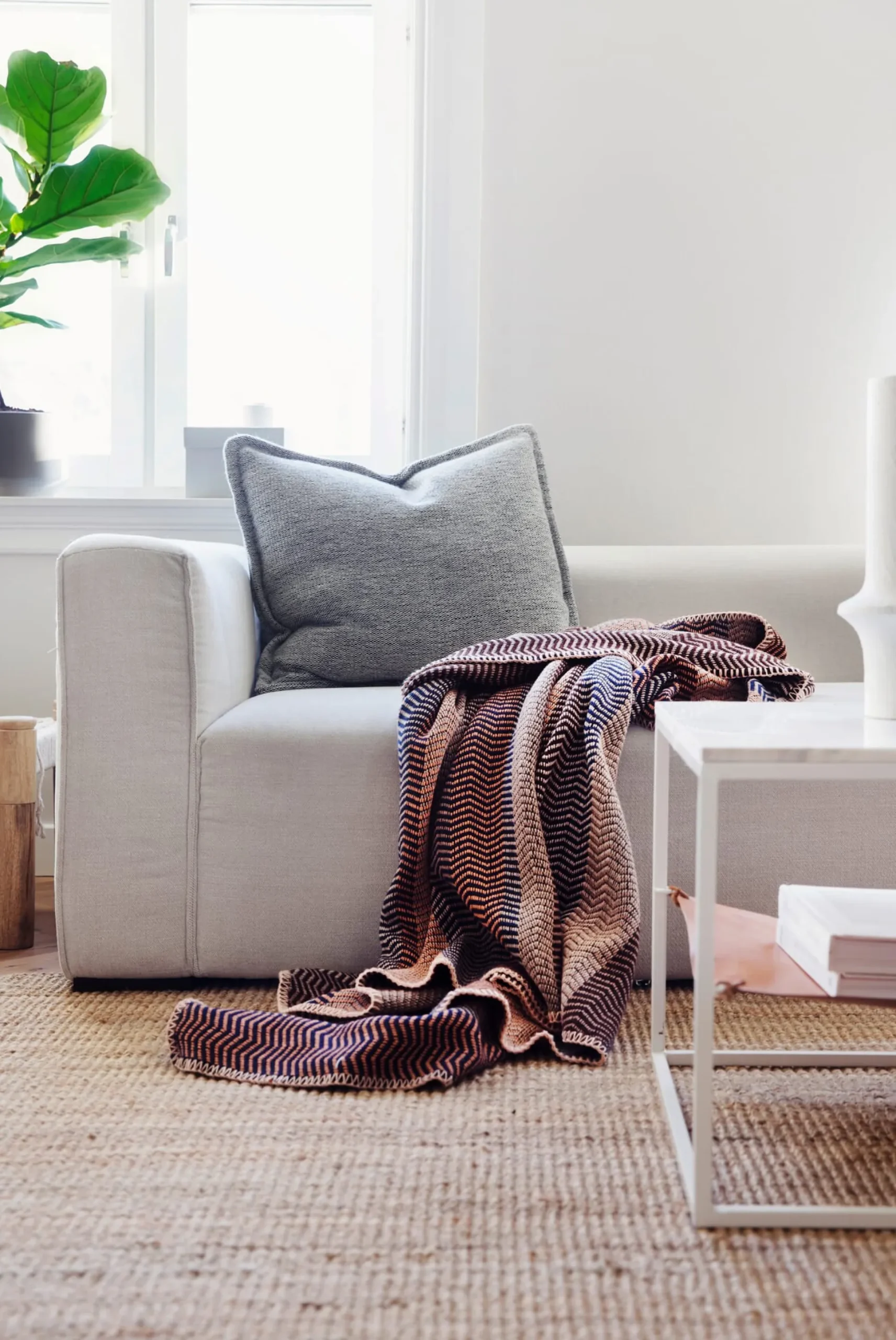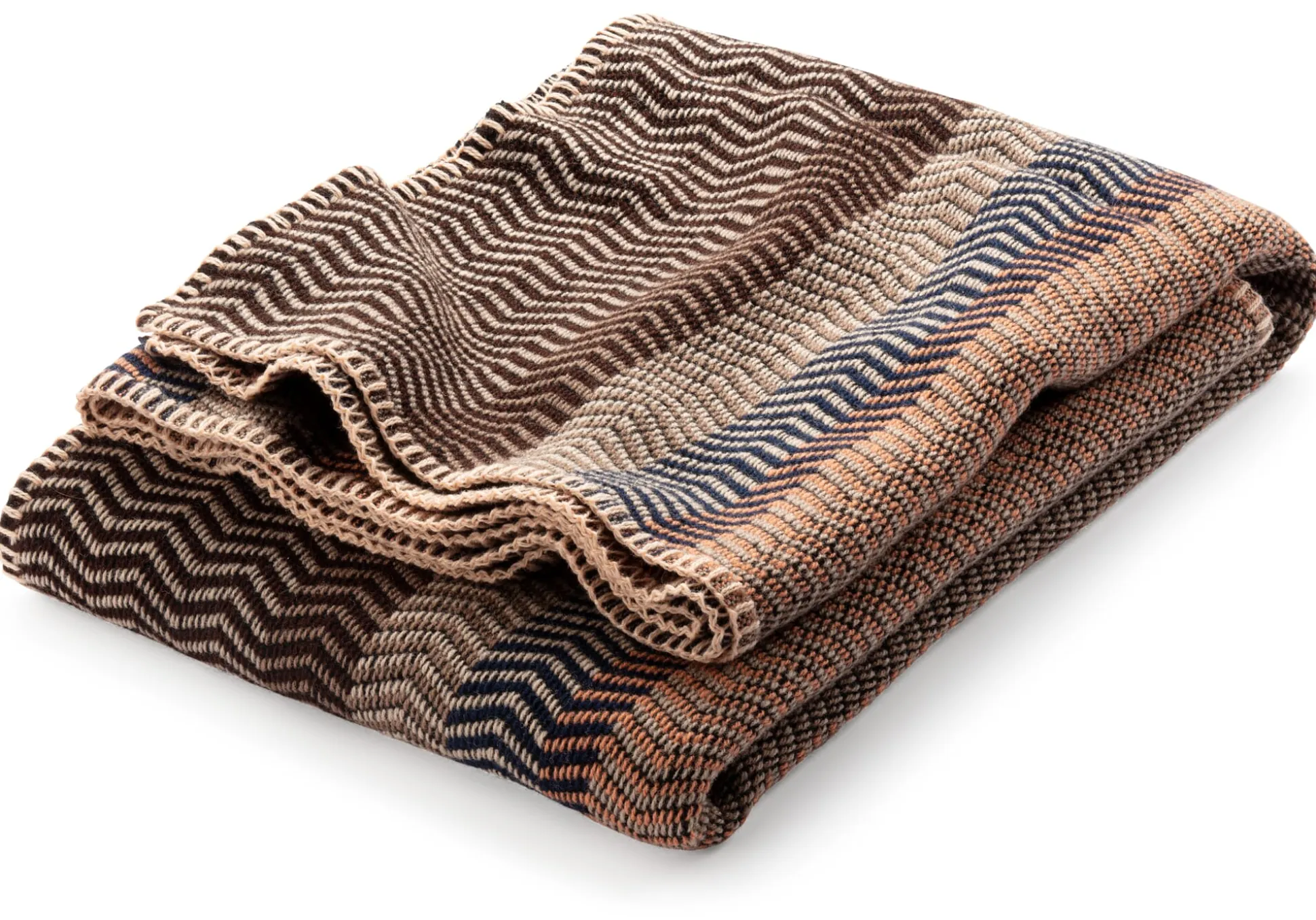- Dezenter Farbrhythmus aus zickzackförmigen Streifen in warmen Naturtönen