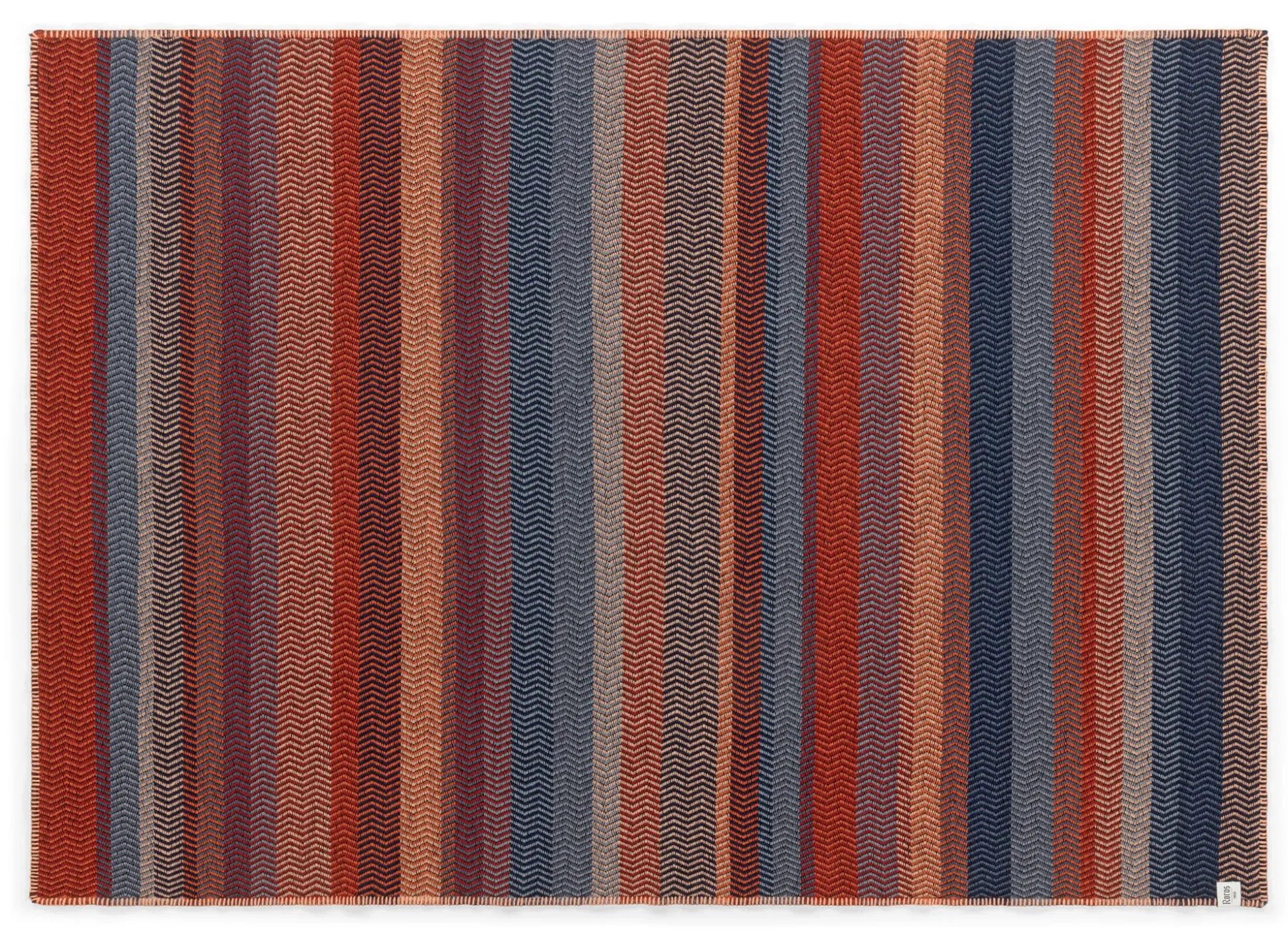 Der Entwurf Fri ist stark von der norwegischen Tradition kleiner, rechteckiger Tischdecken namens „løpere“ inspiriert. Variationen dieser Textilien sind in fast jeder norwegischen Berghütte zu finden. Typisch ist der sich wiederholende Farbrhythmus, der bei dieser Interpretation für Røros Tweed etwas aufgelöst wird: Die Farben verschieben sich scheinbar zufällig auf einem weichen Zickzackmuster. Aus weicher, norwegischer Lammwolle gewebt, hat die Decke Fri einen angenehm schmiegsamen Griff. Die Kanten sind rundum mit farblich passendem Wollgarn umkettelt. Kissenbezüge aus Lammwolle mit dem gleichen Muster finden Sie ebenfalls in unserem Sortiment.