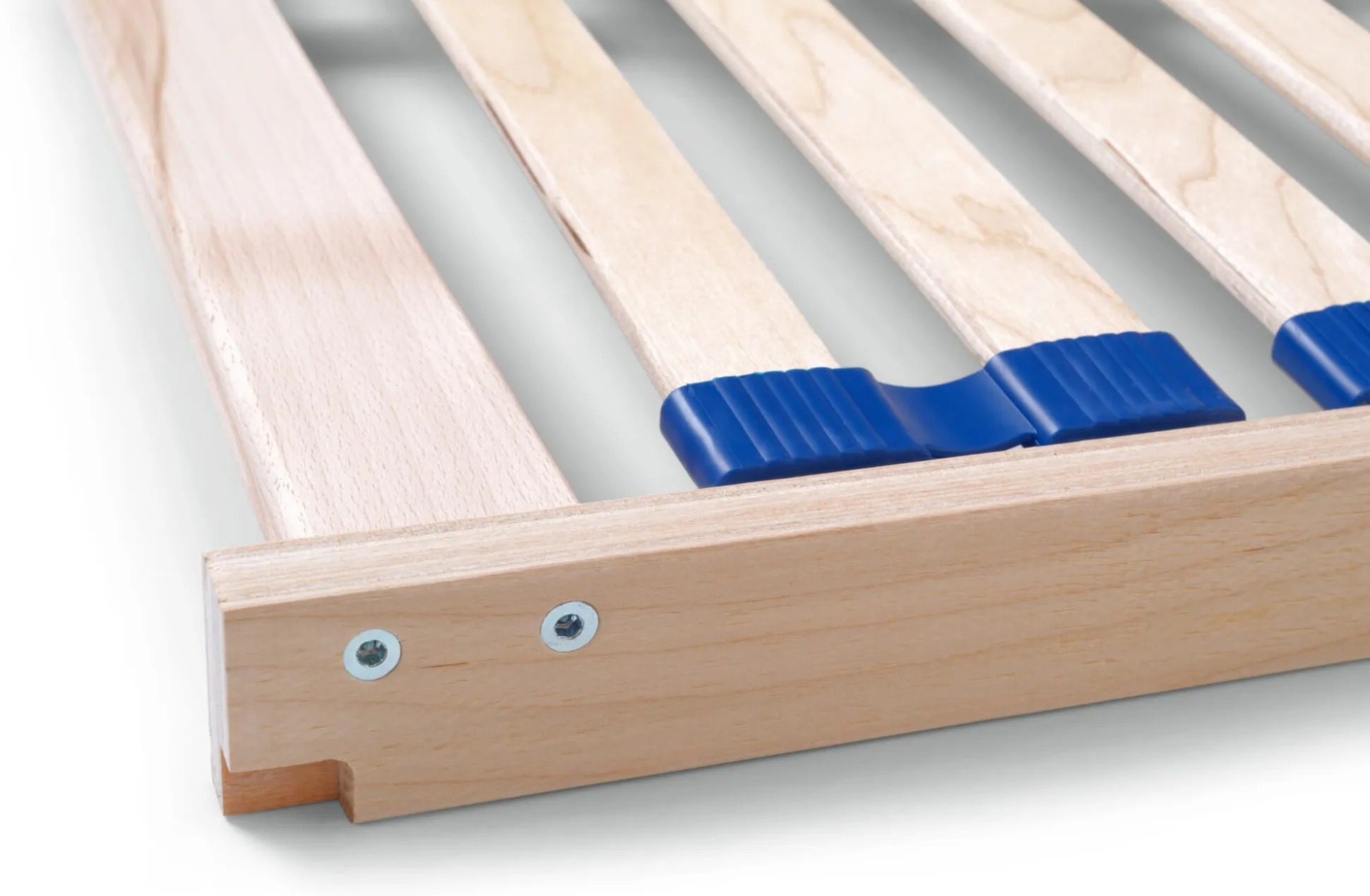 Robuster Rahmen aus Birkenschichtholz: Mit 28 flexiblen Federleisten und geringen Leistenabständen sorgt der LATTENROST RO für eine gleichmäßige Unterstützung des Körpers und ist für jeden Matratzentyp geeignet.