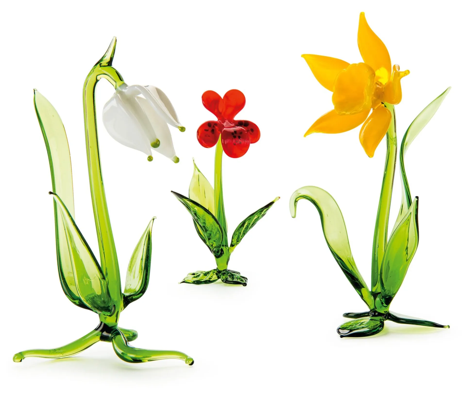 Für diese Arbeiten verwenden die Lauschaer Glasbläser Stäbe aus massivem Farbglas. Die Farbglasstäbe werden in der eigenen Werkstatt zunächst von Hand gezogen, aus diesen Rohlingen modellieren die Glasbläser die Bestandteile der Blume. Stängel, Blütenblätter und Blattwerk werden in der genannten Reihenfolge einzeln bearbeitet und dann zusammengefügt. Damit das gelingen kann, muss das Glas während des gesamten Herstellungsprozesses in einem heißen, zähflüssigen Zustand gehalten werden.