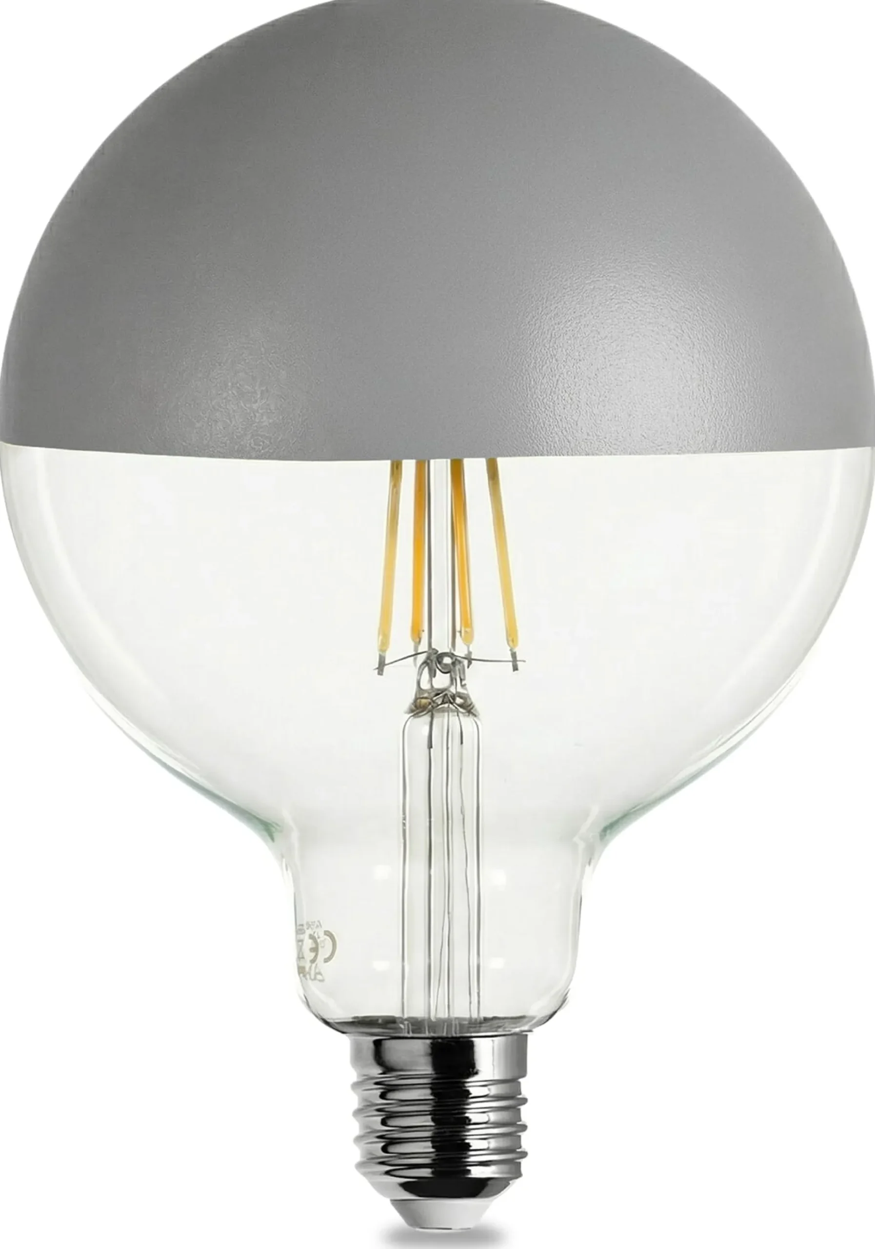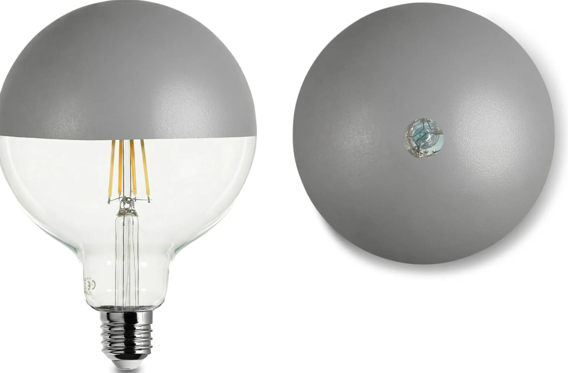 Hingucker im ein- wie ausgeschalteten Zustand: Ein kugelförmiges LED-Leuchtmittel, dessen obere Hälfte in ein mehrschichtiges Farbbad getaucht ist – bis auf eine kleine, kreisrunde Aussparung am oberen Pol. So erhält das austretende Licht eine lebendige Leuchtkraft.