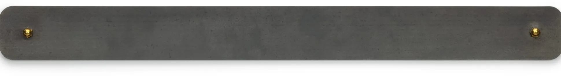 Senkrecht neben der Tür montiert und mit den passenden, starken Magneten ausgestattet, hält diese Leiste aus warmgewalztem Rohstahl Notizen (wie den Einkaufszettel), Visitenkarten, ein- und ausgehende Korrespondenz und nicht zuletzt all die Dinge vor, die man beim Verlassen der Wohnung oder des Hauses braucht und oft genug hektisch und auf den letzten Drücker („Wo sind die Eintrittskarten für die Oper?“, „Hat jemand den Autoschlüssel gesehen?“) sucht.