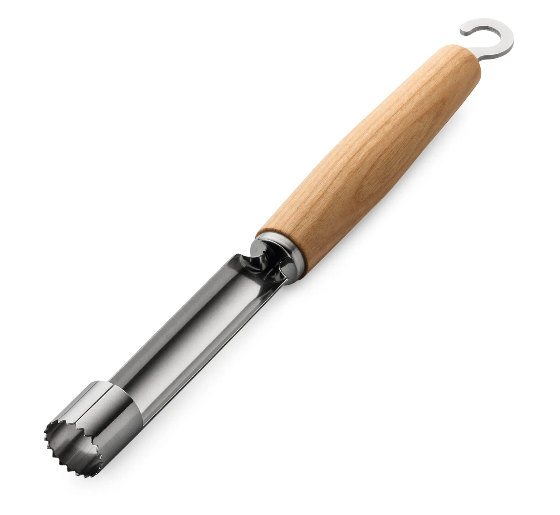 Wenn es ums Entkernen eines Apfels geht, das verlässlichste Werkzeug. Einfach die Klinge mittig (von oben) in den Apfel stechen und das Kerngehäuse ganz herausschieben, anschließend die Klinge säubern.