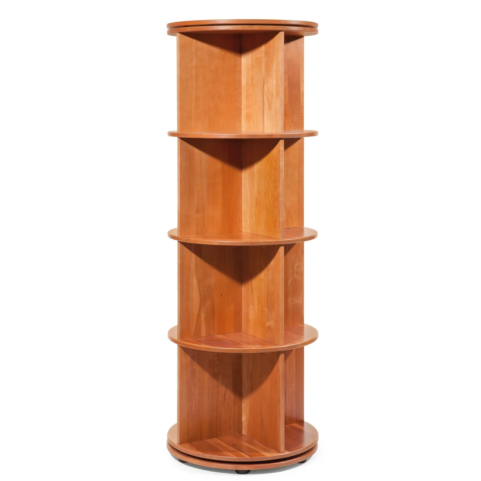 Massive Feuerlandkirsche gebeizt, seidenmatt lackiert. Höhe 175 cm, Ø 60 cm. Gewicht 43 kg. Lieferung ohne Bücher.