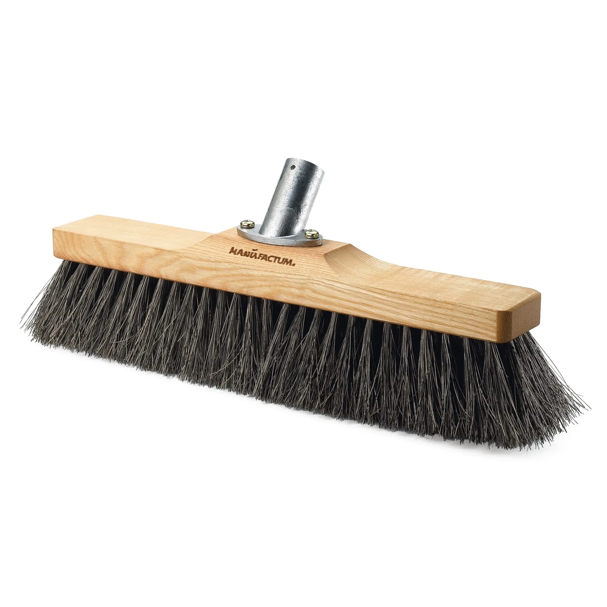 Eschenholzkörper, Besatz Arenga. Besenstielhalter aus Aluminiumguss.