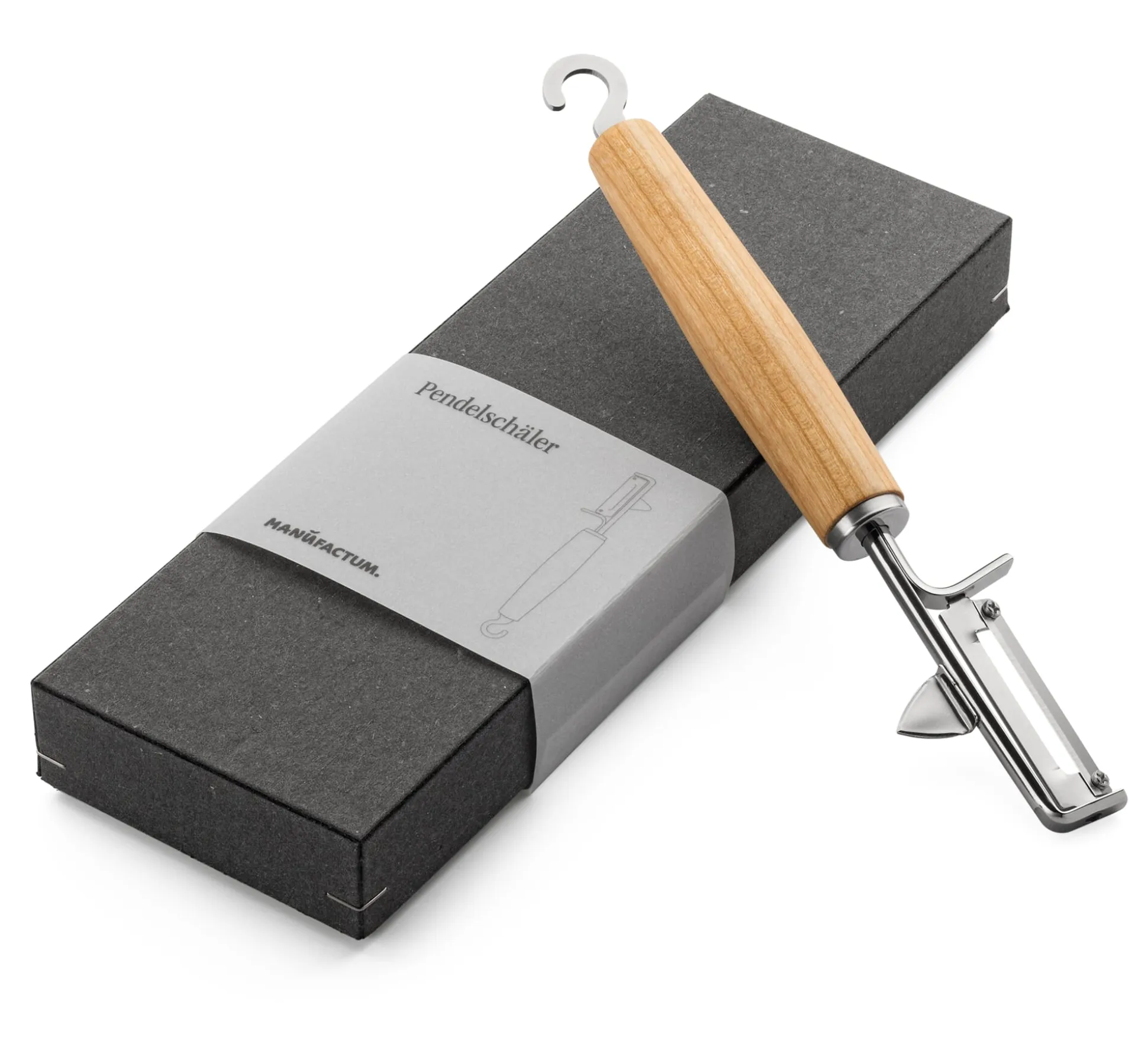 Triangle in der Messerstadt Solingen ist seit 1946 auf die Produktion von klingenbewehrten Küchenwerkzeugen spezialisiert. Die Küchenhelfer unserer hauseigenen Exklusiv-Serie lassen wir dort nach unseren Vorgaben fertigen – mit materialstarken Funktionsteilen aus Edelstahl und ordentlichen Griffen aus geglättetem und geöltem Kirschbaumholz. Wo möglich, etwa bei dem Sparschäler, dem Feinhobel oder dem Käseschneider, sind die Klingen (oder Schneidedrähte) als Ersatzteile verfügbar und können einfach ausgetauscht werden. Eine weitere Besonderheit ist der Aufhängehaken, den Triangle in dieser Form extra für die Manufactum Küchenhelfer anfertigt.