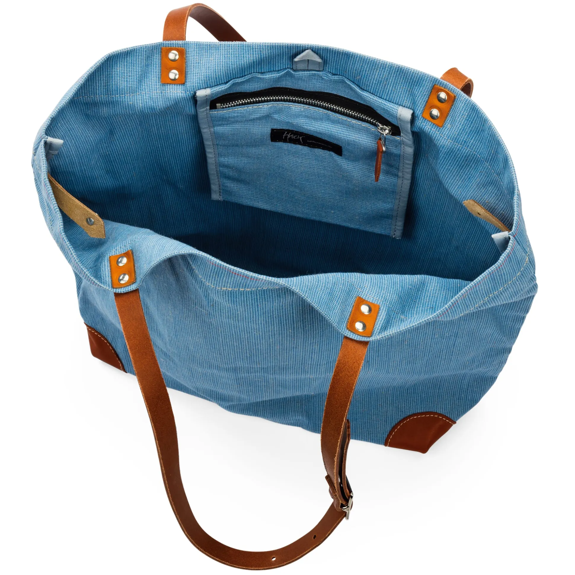 Die große Ausführung unserer Segeltuchtasche ist wie die Handtasche ausgestattet: Eine Innentasche mit Metallreißverschluss bietet Platz für die Geldbörse, das Mobiltelefon oder den Schlüssel – sonst ist der Stauraum ungeteilt. Zusätzlich sind zwei Querriegel in die Seitennähte eingearbeitet, die geschlossen werden können: So bleibt die Tasche schmal, wenn sie wenig oder gar nicht befüllt ist.