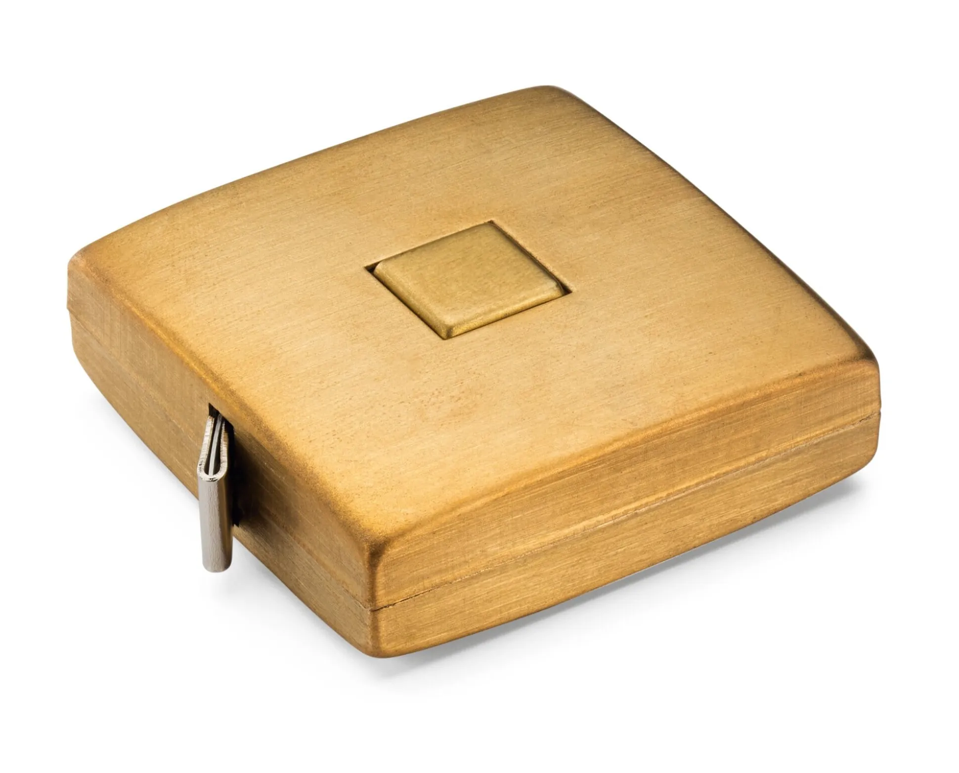 Dass Maßbänder im Gehäuse auch richtig schick sein können und ihr Gehäuse dabei nicht mal wie eines für Maßbänder aussehen muss, beweist dieses Modell eines deutschen Herstellers. Aus gebürstetem Messing gefertigt, könnte es ebenso gut eine Schmuckdose sein. Die Oberfläche entwickelt mit der Zeit und dem Gebrauch eine individuelle Patina, wie sie für diese Art Material typisch ist und die das Maßband gleichzeitig später auch als das Ihrige ausweist. Die Gefahr, dass jemand das Maßband aus Versehen in die eigene Tasche steckt, wird also zum einen gemindert – andererseits auch erhöht, weil das gute Stück schnell Begehren weckt …