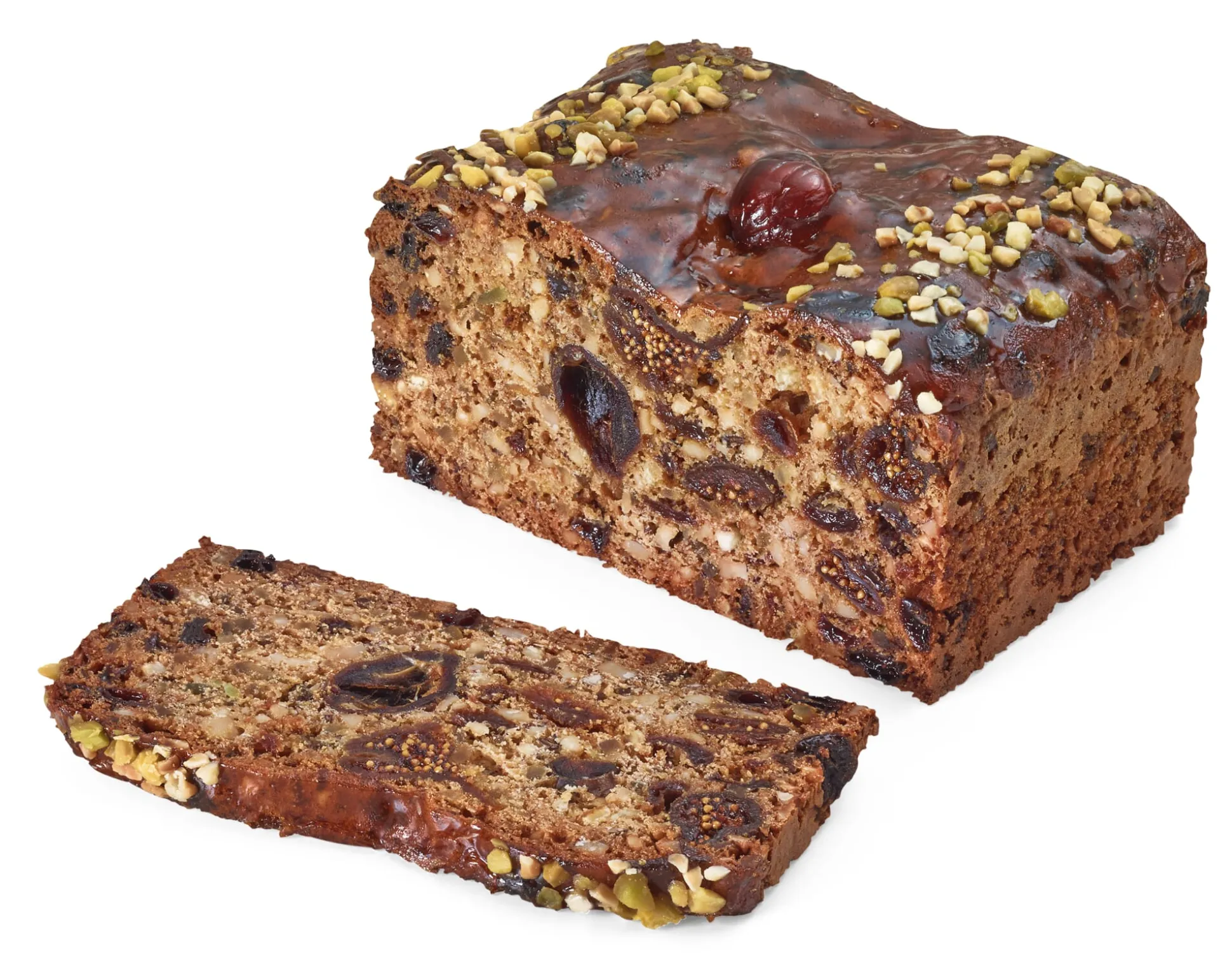 Farinkandis, Weizenmehl, Ei, Haselnüsse, Trockenobst (Feigen, Datteln, Rosinen), Zitronat, Orangeat (Glucose-Fructose-Sirup, Antioxidationsmittel: Zitronensäure), Mandeln, Aprikosenkonfitüre (Aprikosen, Zucker, Pektin), gemahlene Vanille, Pistazien, kandierte Kirschen (Glucosesirup, Antioxidationsmittel: Zitronensäure, Karottensaft, Holundersaft (enthält Sulfite )), Gewürze, Backmittel (Natriumcarbonat, Diphosphat).