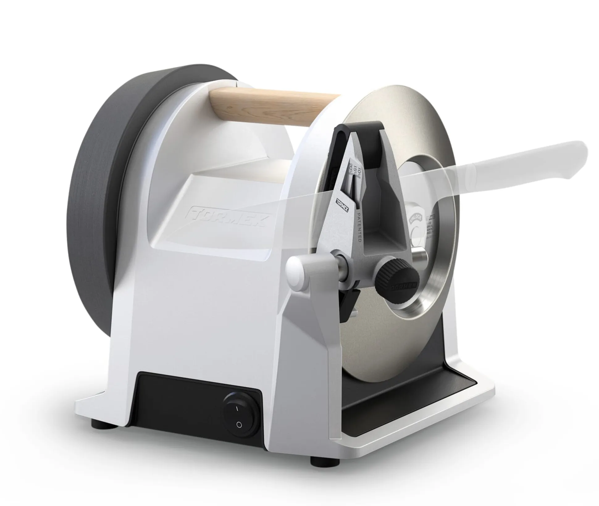 Entwickelt für all die Köch*innen, die nicht nur Wert auf hochwertige Messer legen, sondern denen die Pflege der Ausrüstung am Herzen liegt. Die T-1 von Tormek ist bildschön, kompakt genug, um in der privaten Küche nicht im Weg zu stehen und sie ist einfach zu bedienen – mit professionellem Ergebnis. Die kleine, formschöne und laufruhige Maschine vom renommierten Spezialhersteller sorgt mit der Möglichkeit, den Schleifwinkel individuell einzustellen, für perfekten Schliff.