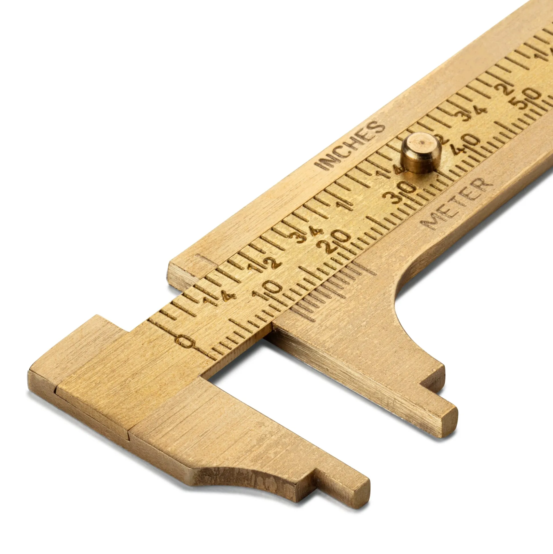 Ein schönes und nützliches Gerät zur Ermittlung von Längen und Durchmessern, das auch als Knopfmaß Verwendung finden kann. So klein der Messschieber ist – und damit perfekt für unterwegs oder das Bordwerkzeug –, so solide und langlebig ist er auch: Aus massivem Messing gefertigt, ist die Skala (in Zoll und Millimeter) dauerhaft eingestanzt und nicht nur aufgedruckt. Das kleine Messwerkzeug misst Länge, Innen- und Außendurchmesser auf ein Zehntel Millimeter genau, kann aber zum Beispiel auch als Knopfmaß verwendet werden.