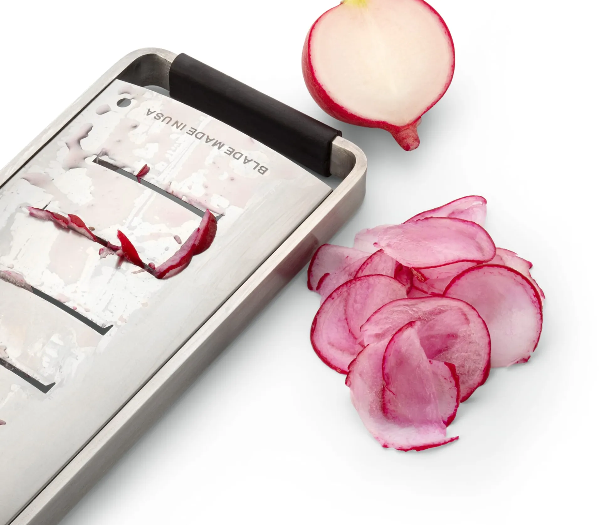 Diese Reiben sind rasiermesserscharf. Ihre vielen kleinen Klingen werden nicht einfach aus dem Material gestanzt, sondern ganz präzise fotogeätzt. Deshalb sind die Klingen so scharf – und bleiben das auch, denn selbst bei häufigem Gebrauch der Reiben nutzen sie sich kaum ab. Zitrusschalen zum Beispiel werden geschnitten, nicht zerrieben, und bewahren Geschmack, Aroma und Vitamine. Schokolade und Hartkäse lassen sich in feine Flocken hobeln, Kartoffeln und Gemüse behalten ihre Struktur.