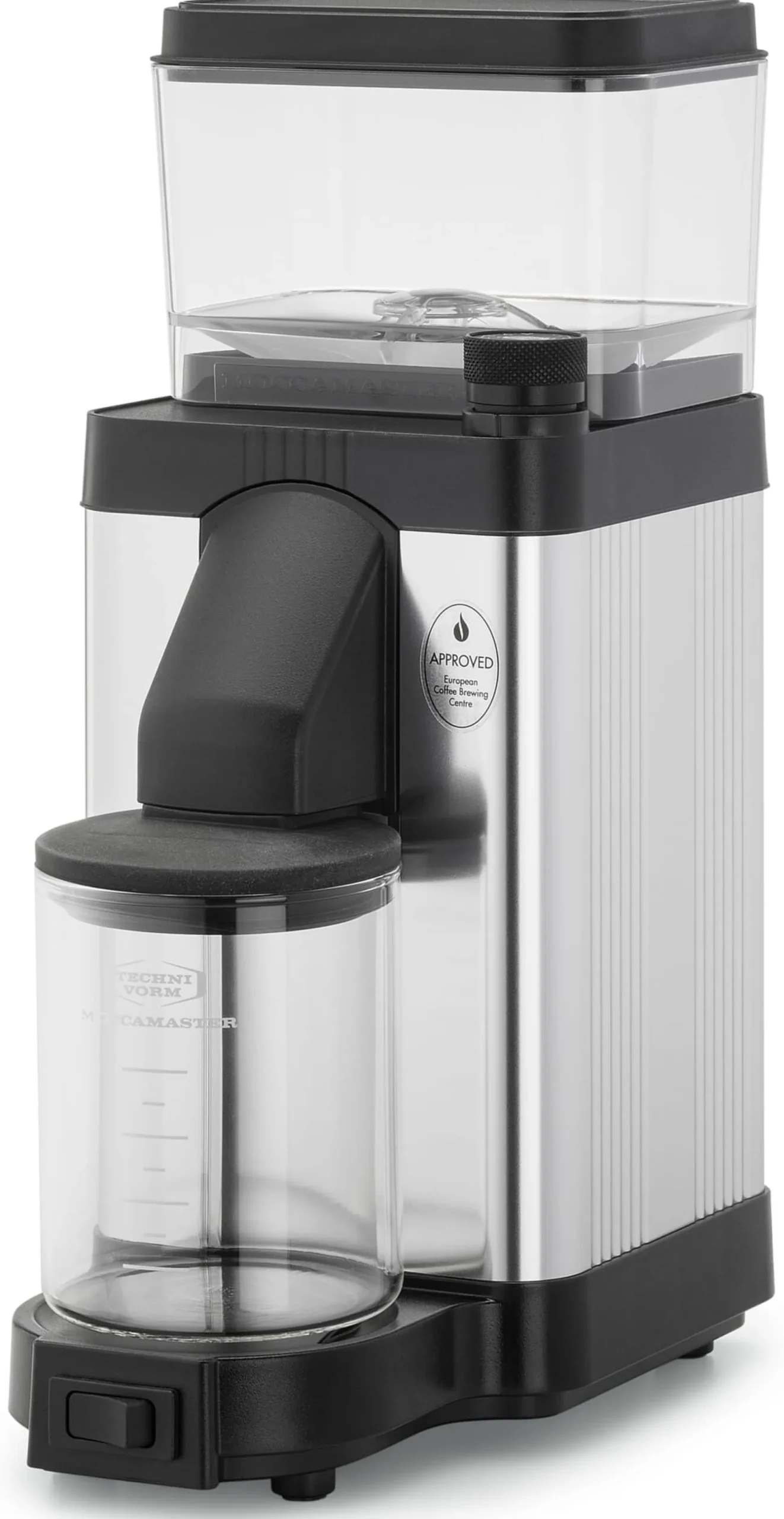 Seit 1965 setzt diese Kaffeemühle Maßstäbe. Als Technivorm-Gründer Gerard Clement Smit das Gerät auf den Markt brachte, waren elektrische Kaffeemühlen für den Hausgebrauch rar gesät und seine Erfindung eine kleine Revolution auf dem Kaffeemarkt. Überarbeitet werden musste das Konzept der Mühle jedoch kein einziges Mal – und das bis heute. Die KM5 überzeugt als Neuauflage mit einem Präzisionsmahlwerk und langlebigen 50-mm-Mahlscheiben aus Stahl, deren Spezialgebiet gleichmäßiges Mahlen ist. Von Medium Fine Drip zu Cold Brew: Mithilfe des Drehknopfes lässt sich der Mahlgrad stufenlos auf unterschiedliche Stärken einstellen. Der leistungsstarke Motor dieser Kaffeemühle arbeitet leise, aber effizient und bewältigt 60 Gramm Kaffeebohnen in 30 Sekunden. Der speziell designte Kaffeemehlauslauf reduziert die statische Aufladung auf ein Minimum und vervollständigt so das perfekte Mahlerlebnis und -ergebnis. Dieser Meinung ist auch das European Coffee Brewing Centre, dessen strenge Anforderungen an Technik und Performance von Kaffeemühlen die Moccamaster KM5 spielend erfüllt.