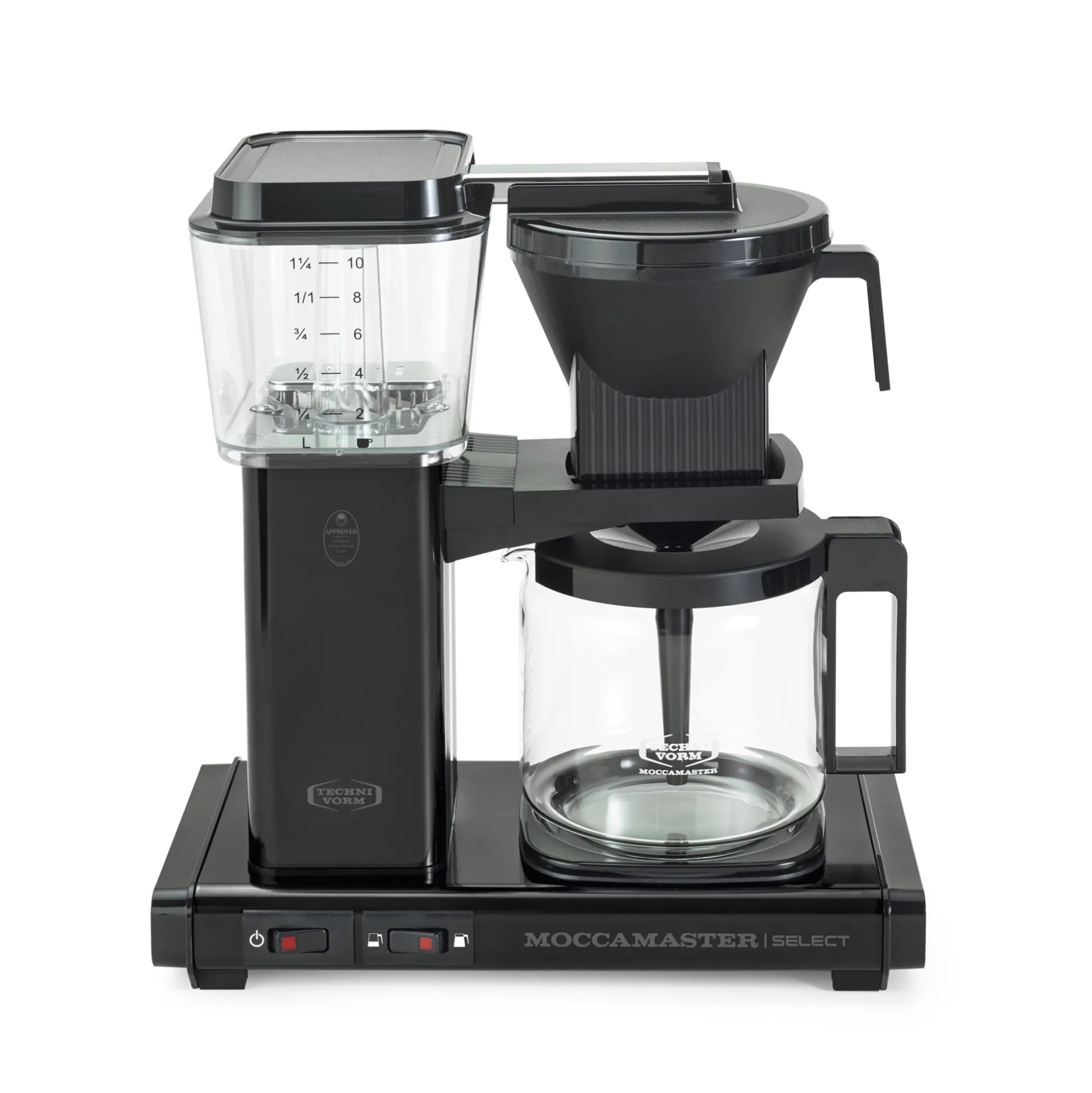 Mit automatischer Abschaltfunktion nach 40 Minuten. Gehäuse Aluminium. Glaskanne mit 1,25 l Volumen (10 Tassen). Wasserbehälter aus transparentem, Kannendeckel aus schwarzem Kunststoff. Filterhalter Größe 4. Leistungsaufnahme 1.350–1.520 W.